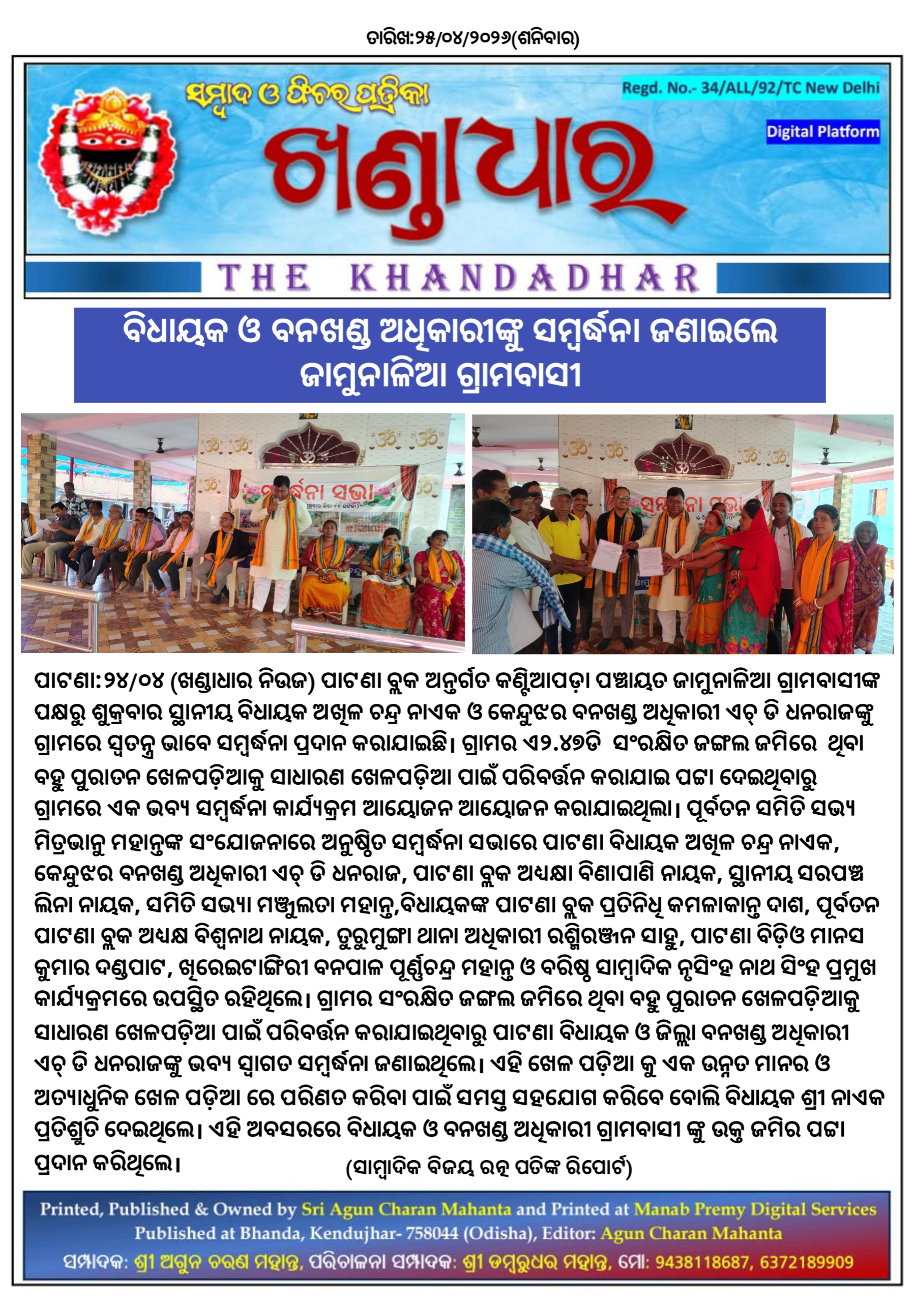 ଖଣ୍ଡାଧାର ନିଉଜ- ସାମ୍ବାଦିକ ବିଜୟ ରତ୍ନ ପତିଙ୍କ ରିପୋର୍ଟ।