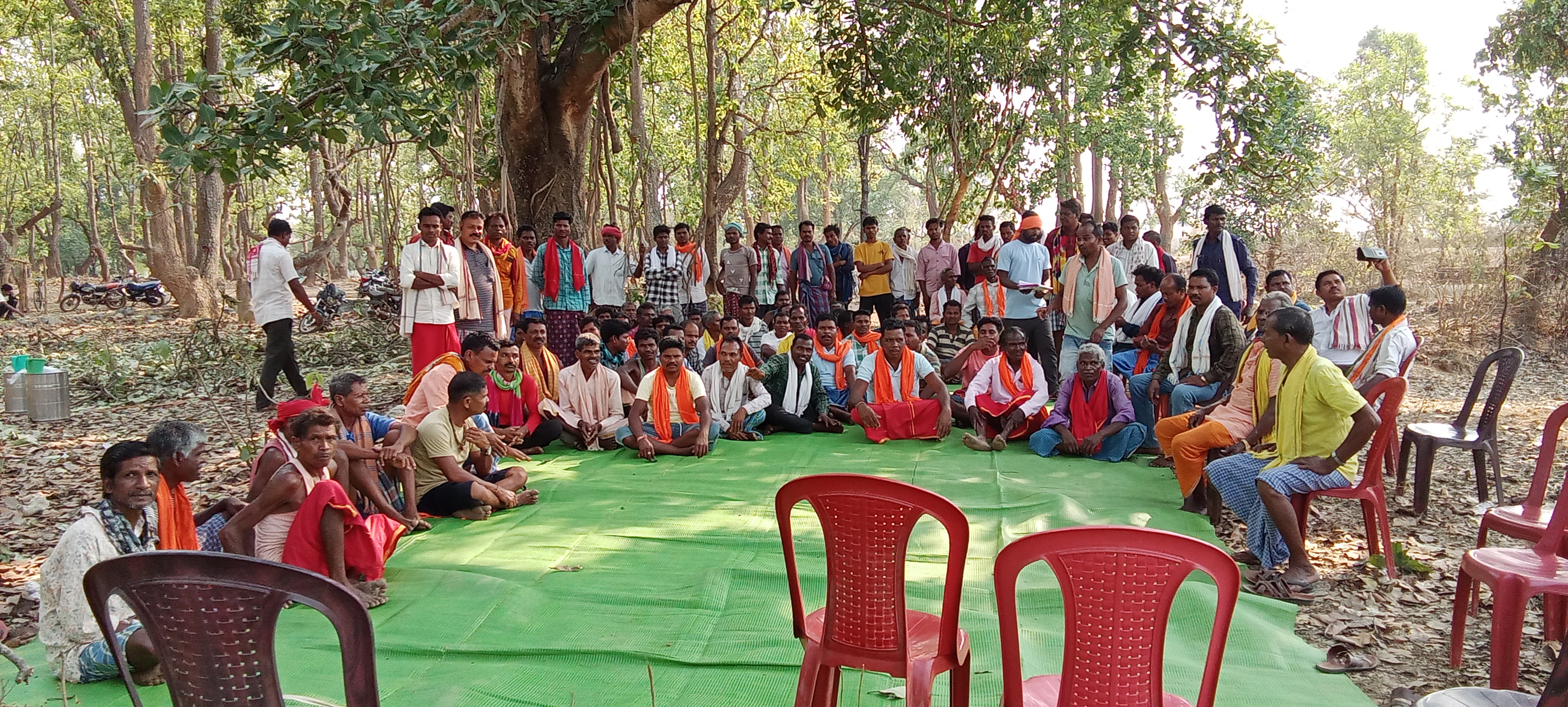 18 ग्राम पंचायत के सरपंच, कोटवार पुजारी गायतां सभी, सर्व आदिवासी समाज मिल कर इसाई धर्मांतरण के विरुद्ध ग्राम पंचायत पिपलावन्ड मे एकत्र हुए।आज दिनांक 28/4/2026 सर्व समाज प्रमुख बैठक रखकर यहा निर्णय लिये कि बस्तर संभाग पांचवीं अनुसूची क्षेत्र में आता है जिसमें में बाहरी ईसाई फास्टर को गांवों में गांव के पुजारी कोटवार को बिना पुछे घुसना निषेध निर्णय किये एवं आने वाले दिनों में 18 गांवों में बने ईसाई समुदायों का चर्चों को तोड़ने का कार्यवाही करेंगे। और एक मौका इसाई लोगो को मुल धर्म में वापसी करने का दो दिनो का समय दिया गया है।