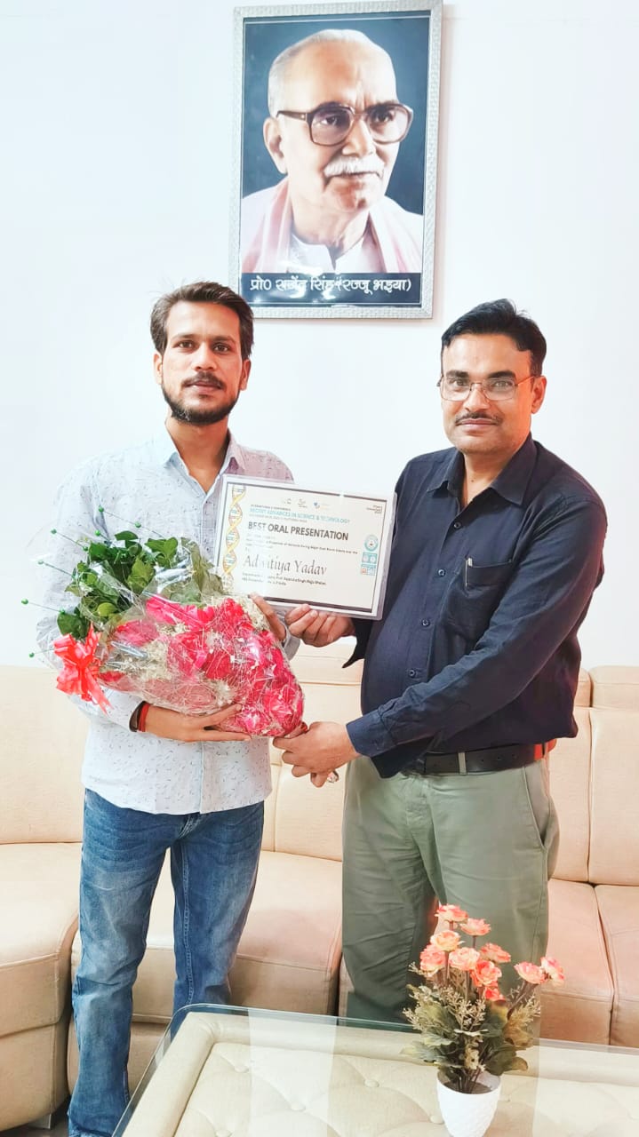 जौनपुर-वीर बहादुर सिंह पूर्वांचल विश्वविद्यालय परिसर स्थित रज्जू भैया संस्थान के भौतिकी विभाग के शोधछात्र अद्वितीय यादव को आईआईटीएम साइंस एंड टेक्नोलॉजी, नई दिल्ली द्वारा चार से पांच नवंबर, 2023 को आयोजित अंतर्राष्ट्रीय ई कॉन्फ्रेंस "रिसेंट एडवांसेस इन सांइस एंड टेक्नोलोजी" में सर्वश्रेष्ठ प्रस्तुति के लिए पुरस्कृत किया गया है। अद्वितीय को यह पुरस्कार नॉन डिस्ट्रक्टिव विधि से भारतीय गंगा बेसिन में एरोसोल्स के ऊपर किए गए शोध कार्य के लिए प्रदान किया गया है। एरोसोल्स की सांद्रता गंगा बेसिन क्षेत्र में ज्यादा पाया गया, जिससे श्वशन संबंधी समस्या उत्पन्न हो सकती है और वायु गुणवत्ता सूचनांक अधिक हो जाता है। इस अंतर्राष्ट्रीय कॉन्फ्रेंस में देश - विदेश के विभिन्न संस्थानों / विश्वविद्यालयों के 200 से अधिक प्रोफेसर्स, वैज्ञानिक और शोधार्थी शामिल हुए थे, जहां भौतिकी के क्षेत्र में सर्वश्रेष्ठ प्रस्तुति हेतु पुरस्कृत किया गया।