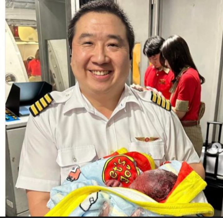 VietJet pilot Jakarin Sararnraksul showcased heroism when a passenger unexpectedly went into labour on a Taipei to Bangkok flight. With 18 years of experience, he assisted in the mid-air delivery, proudly sharing a photo with the newborn, nicknamed “Sky baby.” Both mother and child were confirmed safe and healthy upon landing in Bangkok, where paramedics awaited the aircraft.