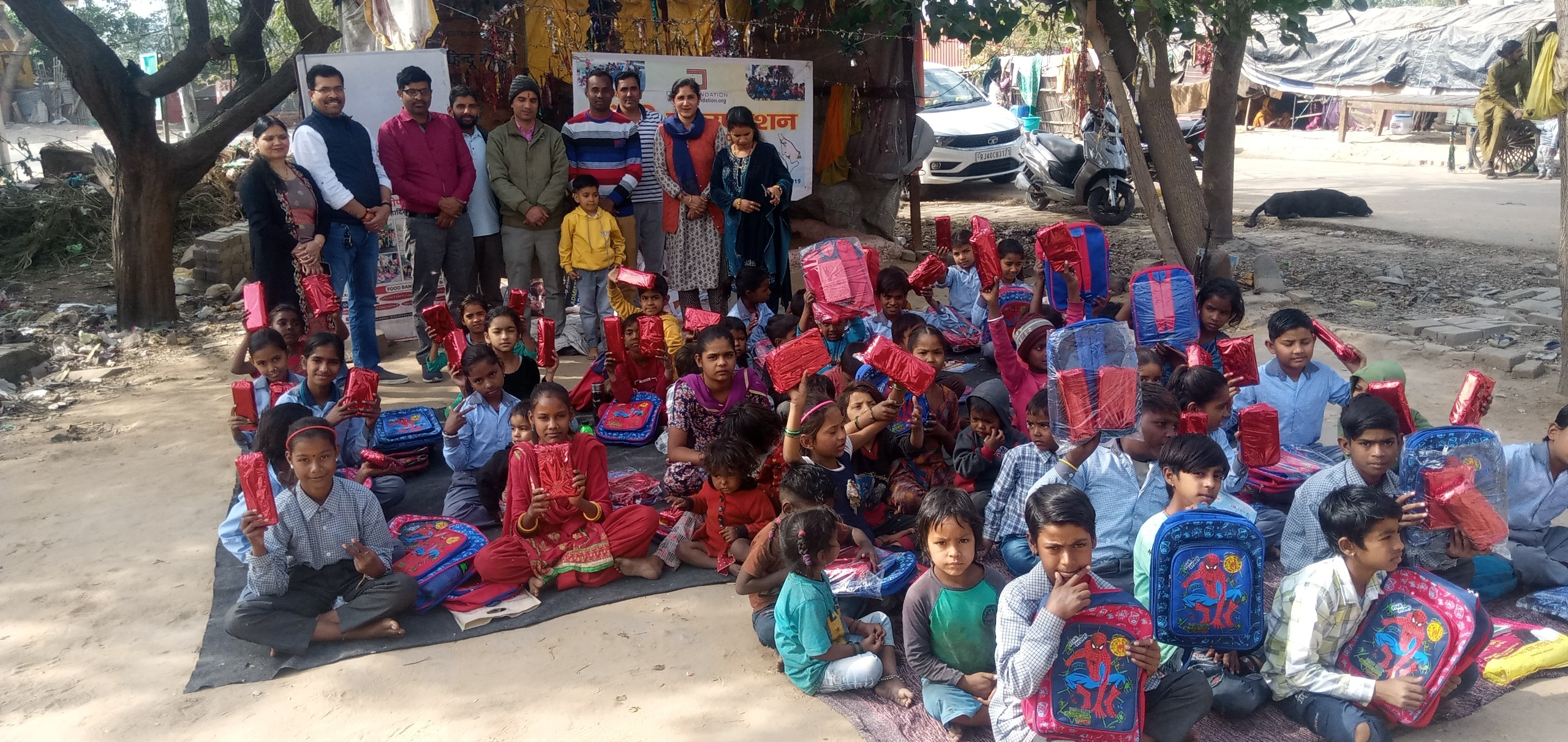 एक नया कदम, स्व. प्रकाश श्रीवास्तव की पुण्य स्मृति में झुग्गियों में पढ़ने वाले गरीब और जरूरतमंद बच्चों को शिक्षण सामग्री भेंट