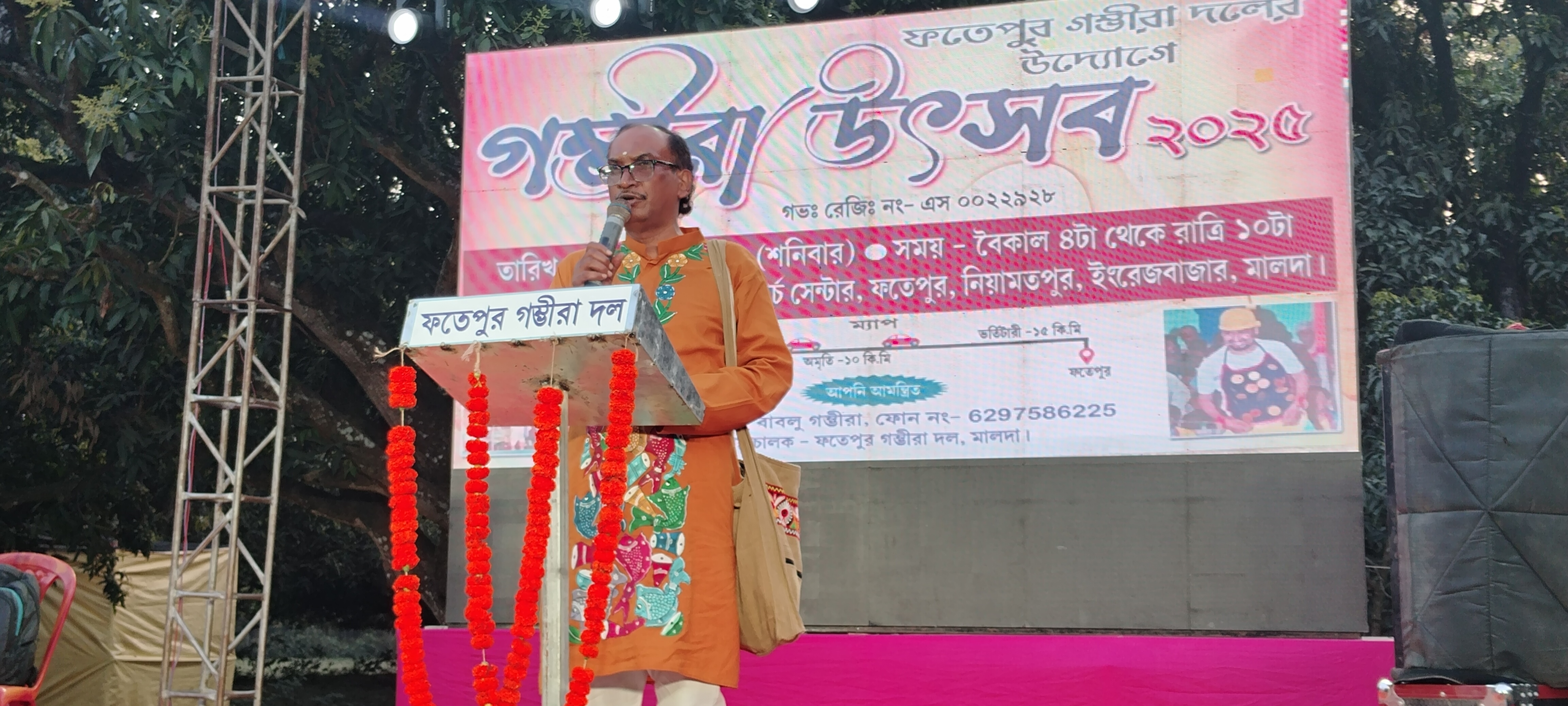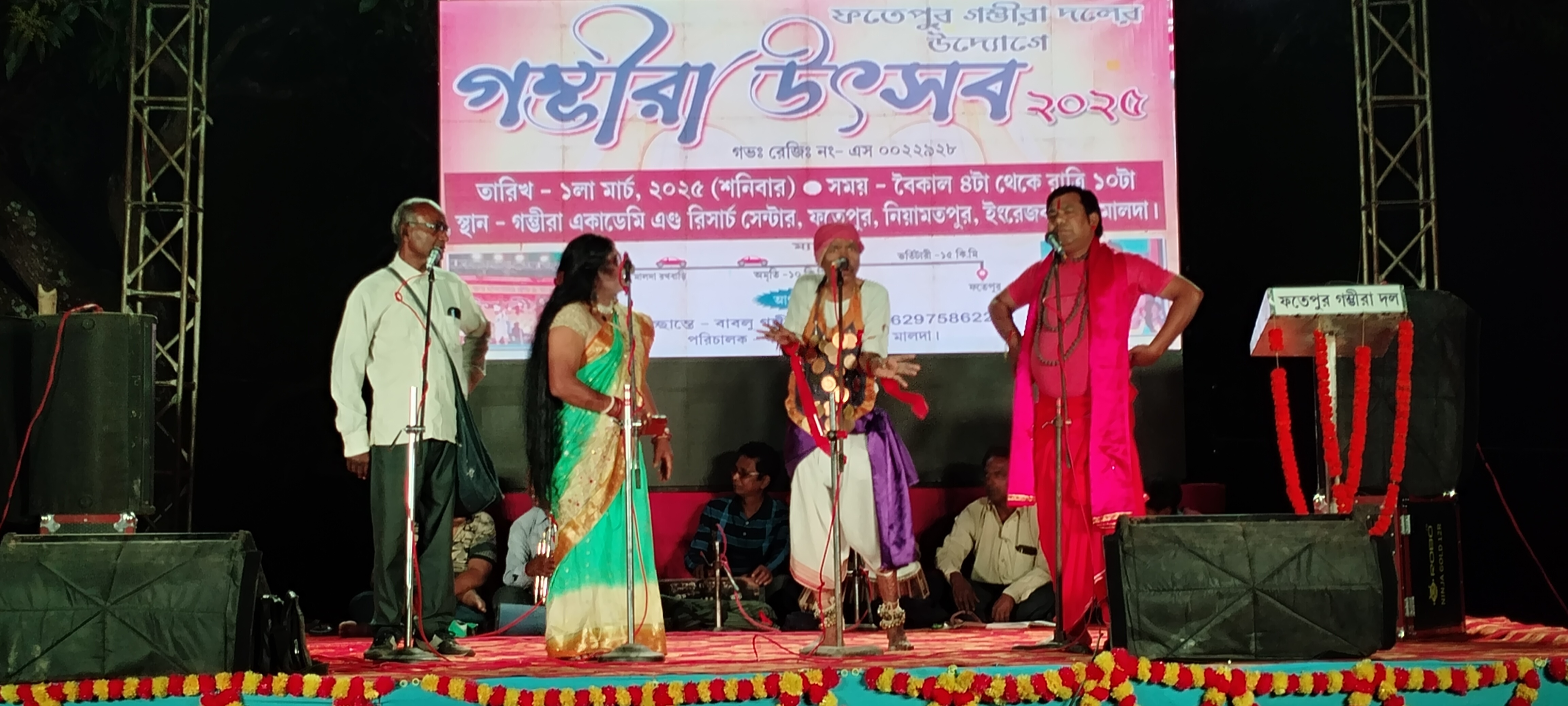 Gambhira Festivals -2025 was organized by Fatehpur Gambhira Group on Saturday in the Fatehpur village under English Bazar Police Station, Malda. The opening ceremony was started by the lightning of traditional lamps by distinguished Guests who are represented from different traditional cultures. The programme started by the Mukha Nritya(Mask Dance)by Tanushree Mandal, a young resident girl from the host village of Fatehpur. The Guests were faliciated by Gamcha, a traditional cloth used in Gambhira and other folks dances. Dr. Patit Pavan Chowdhury, and Mrs. Chandra Jha Mishra presented the poem and songs in Khotta Language respectedly. The programme started at 4.30 in the afternoon and it finished at 10 o'clock at night where different Gambhira Groups performed their presentation .