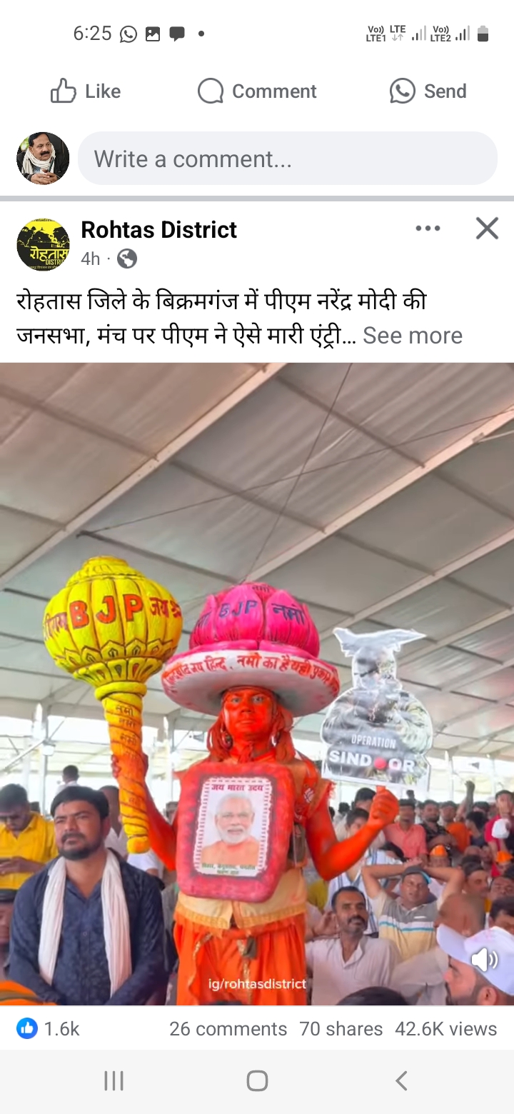 सीएम नीतीश ने प्रधानमंत्री नरेंद्र मोदी जी की जगह अपने भाषण में अटल बिहारी वाजपेई कहकर संबोधित किया उपस्थित जनता हंसने लगी तब उन्होंने सुधार करते हुए फिर से माननीय प्रधानमंत्री नरेंद्र दास मोदी जी कहा और उन्होंने जनता से कहा- सब खड़े होकर इनको प्रणाम कीजिए,सीएम ने कहा कि यह खुशी की बात है कि केंद्र ने जातीय जनगणना कराने का फैसला लिया है। मैं इसके लिए पीएम मोदी को नमन करता हूं। विपक्ष पर हमला बोलते हुए सीएम नीतीश कुमार ने कहा कि दूसरे पार्टी के लिए क्रेडिट लेने में लगे हुए हैं। लेकिन हमने पहले ही जातीय गणना कराने का निर्णय लिया इसके पूर्व वैभव सूर्यवंशी की हुई पीएम मोदी से पटना एयरपोर्ट पर मुलाकात, स्टार क्रिकेटर ने पैर छूकर ल‍िया आशीर्वाद, बिहार के पटना में प्रधानमंत्री ने रोड शो भी किया उसके बाद रोहतास जिले के बिक्रमगंज सभा स्थल पर शुक्रवार को पहुंचे जहां जनता की उपस्थित कम देखकर नाराज हुए बहुत सी कुर्सियां खाली नजर आई इसलिए रोहतास जिले के बंद रोहतास उद्योग के बारे में उन्होंने कुछ नहीं कहा बेरोजगारों को आशा थी कि कल कारखाने के बारे में माननीय प्रधानमंत्री अपना आवाज बुलंद कर सौगात देंगे लेकिन खोदा पहाड़ निकली चुहिया वाली कहानी चरितार्थ हो गई उपस्थित लोगों को पीने के पानी के लिए भी इधर-उधर भटकना पड़ा प्रधानमंत्री नरेंद्र दास मोदी जी के आगमन से रोहतास जिले और मगध क्षेत्र के लोगों में काफी निराशा हाथ लगी