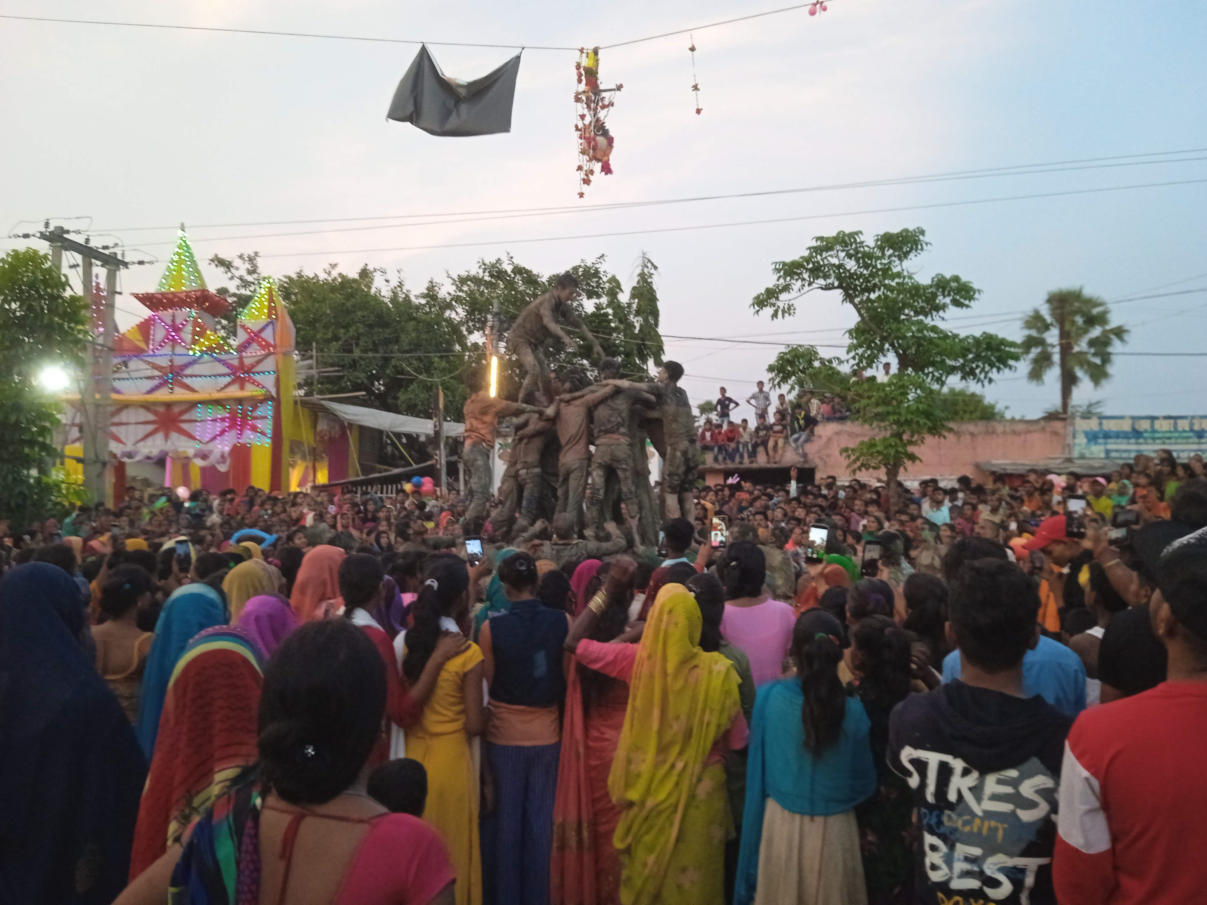 तारडीह।प्रखंड क्षेत्र के पुतई में बाडा चौक पर प्रत्येक वर्ष की भांति इस वर्ष भी श्री कृष्ण जन्माष्टमी पुजा का आयोजन श्री श्री नवयुवक कृष्ण जन्माष्टमी पुजा समिति द्वारा कीया गया था। पुजा समिति के अड़तीसवें वर्षगांठ के अवसर पर भव्य रूप से मटका फोड़ कार्यक्रम आयोजित कीया गया।इस वर्ष मटका फोड़ प्रतियोगिता का आयोजन क्षेत्र के विभिन्न गोविन्दा समुहो के साथ सुरक्षित रूप से करवाने के लिए पुजा कमिटी का विशेष प्रयास रहा ।स्थानीय गोविंदाओ ने हर्ष पुर्वक मटका फोड़ प्रतियोगिता में भाग लिया। समिति से जुड़े अविनाश कुमार ने इसे संस्कृति एवं परंपराओं के प्रति युवाओं को जागरूक करने का प्रयास बताया।गोविंदाओं ने भारी परिश्रम के बाद मटकी फोड़ी । मटकी फोड़ने को लेकर गोविंदा गोल वृत्ताकार बनकर एक दूसरे के कंधे पर चढ़ कर मटकी के निकट पहुंचे की कोशिश करते की। आसपास के लोगों द्वारा गोविंदाओं पर पानी मिश्रित मठ्ठा का बौछार कर देते हैं जिससे सभी भरभड़ा कर नीचे गिर जाते, नीचे जमीन पर मिट्टी बिछे रहने से किसी गोविंदा को गंभीर चोट नहीं आई, तीसरे प्रयास में मटकी फोड़ने में गोविंदाओं को सफलता मिली। दही हांडी कार्यक्रम को देखने के लिए आसपास के गांव से भी सैकड़ों की संख्या में महिला पुरुषों की भीड़ उमड़ा। भगवान श्रीकृष्ण प्राकट्य उत्सव पर दही हांडी मटकी फोड़ने को लेकर स्थानीय युवाओं द्वारा महीनों से इसकी तैयारी करते है