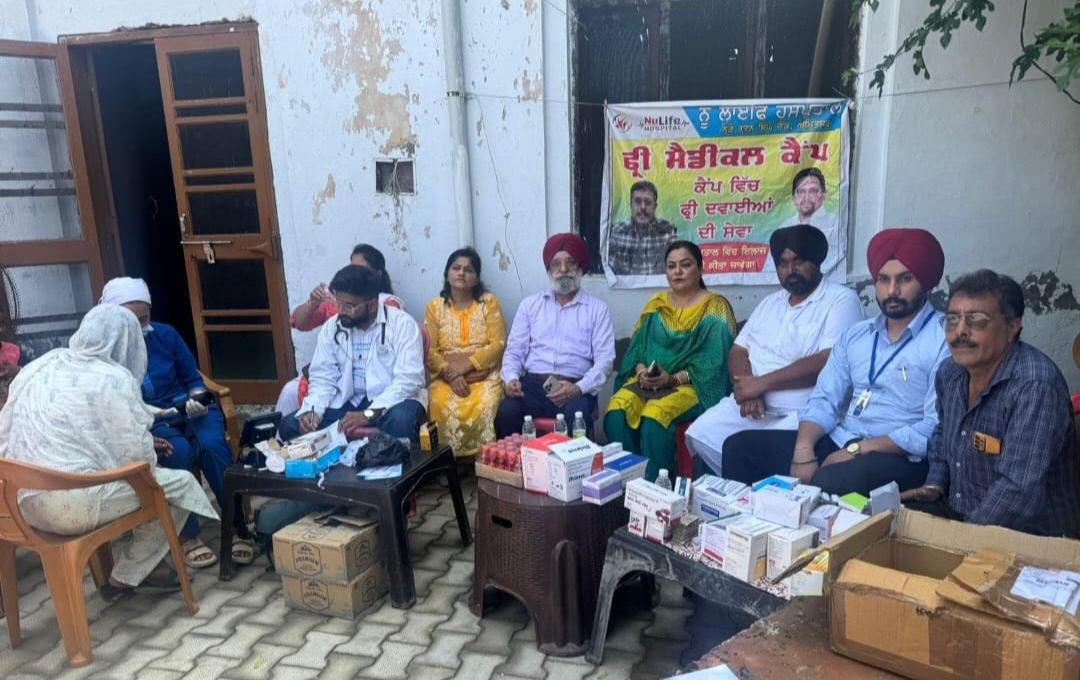 बाद पिीिइ़तोंक िलए गांव गोमाहल में मैडीकल लगते हुए एन.यू. लाइफ हिरेयटलऔर नविनमिण की टीम।