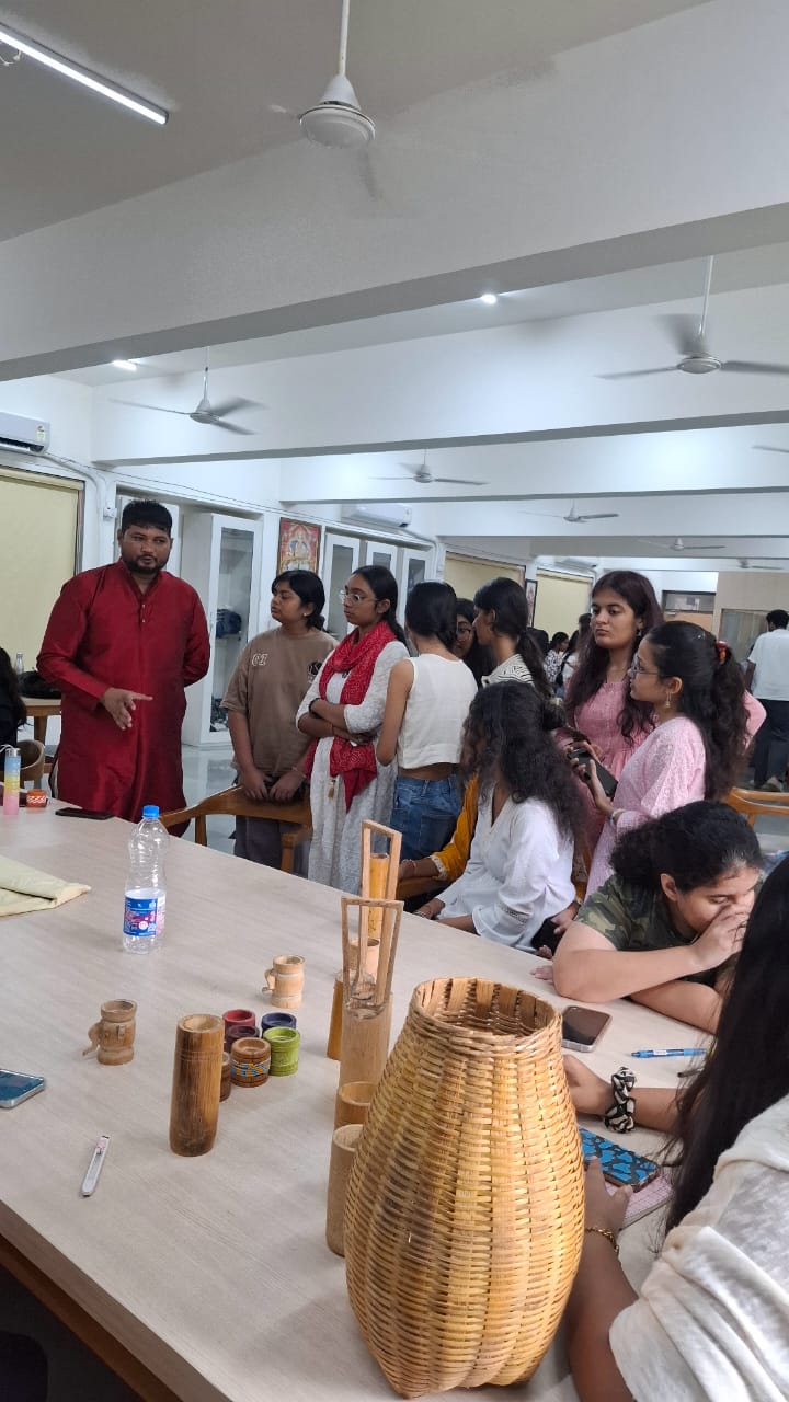कार्यक्रम के दौरान हस्तकला सेवा केंद्र से जुड़े कुशल कारीगरों ने विभिन्न हस्तकलाओं का जीवंत प्रदर्शन प्रस्तुत किया तथा विद्यार्थियों को हस्तकला की विशेषताओं, पारंपरिक शिल्पकला की विधियों एवं तकनीकी बारीकियों से अवगत कराया।