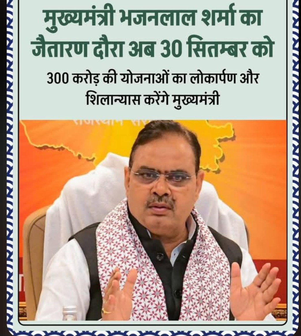 राजस्थान के मुख्यमंत्री भजनलाल शर्मा 30 सितम्बर 2025 को जैतारण दौरे पर आ रहे है 300 करोङ की सोगात देंगे जैतारण वासियोको मुख्यमंत्री बनने के बाद पहली बार आ रहै है जैतारण