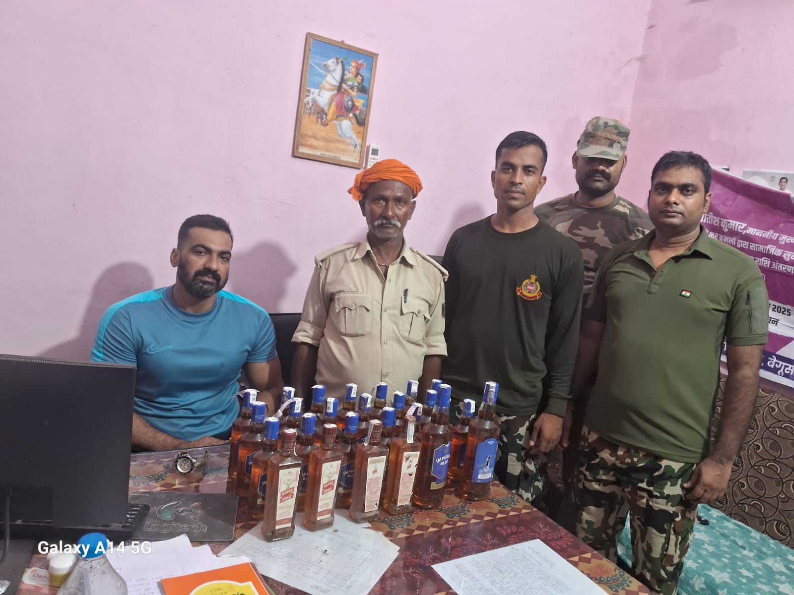 बेगूसराय/ संवाददाता।अवैध शराब कारोबार पर शिकंजा कसने के लिए नौला पिकेट की पुलिस लगातार अभियान चला रही है। इसी क्रम में रविवार देर रात गुप्त सूचना पर की गई कार्रवाई में पुलिस ने बोरे में बंद 24 बोतल विदेशी शराब बरामद की। हालांकि अंधेरे का फायदा उठाकर कारोबारी मौके से फरार हो गया।नौला पिकेट प्रभारी अकरम खान ने बताया कि देर रात करीब साढ़े ग्यारह बजे नौला चौक स्थित मुसहरी के समीप छापेमारी की गई। पुलिस को देखते ही कारोबारी बोरा छोड़कर भाग निकला। बरामद शराब 375 एमएल की 24 बोतल है, जिसकी कुल मात्रा लगभग साढ़े दस लीटर बताई जा रही है। इस मामले में अज्ञात कारोबारी के खिलाफ भगवानपुर थाना में प्राथमिकी दर्ज की गई है।आशंका जताई जा रही है कि दुर्गा पूजा के अवसर पर शराब की यह खेप कहीं भेजी जा रही थी, लेकिन पुलिस ने इसे विफल कर दिया। वहीं पुलिस ने भीठ गांव में छापेमारी कर 30 लीटर देसी शराब भी बरामद किया है। लगातार हो रही इन कार्रवाइयों से इलाके के अवैध शराब कारोबारियों में हड़कंप मचा हुआ है।छापेमारी दल में पिकेट पुलिस बल के विकास कुमार, अजीत कुमार, घनश्याम प्रजापति, राजू कुमार तथा स्थानीय चौकीदार मंटून पासवान समेत अन्य जवान शामिल थे।