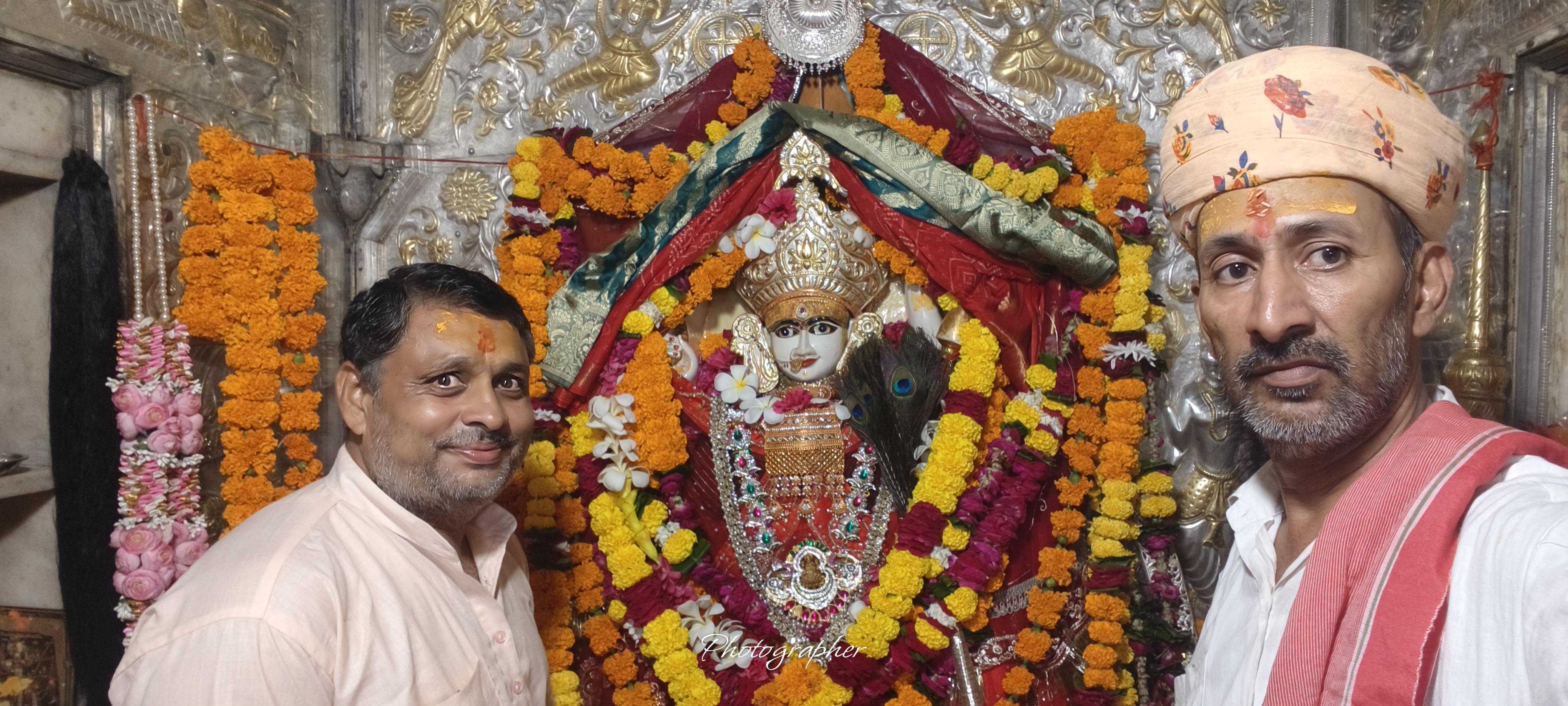 मंदिर फूल मालाओं व रंग-बिरंगी रोशनी से सजा