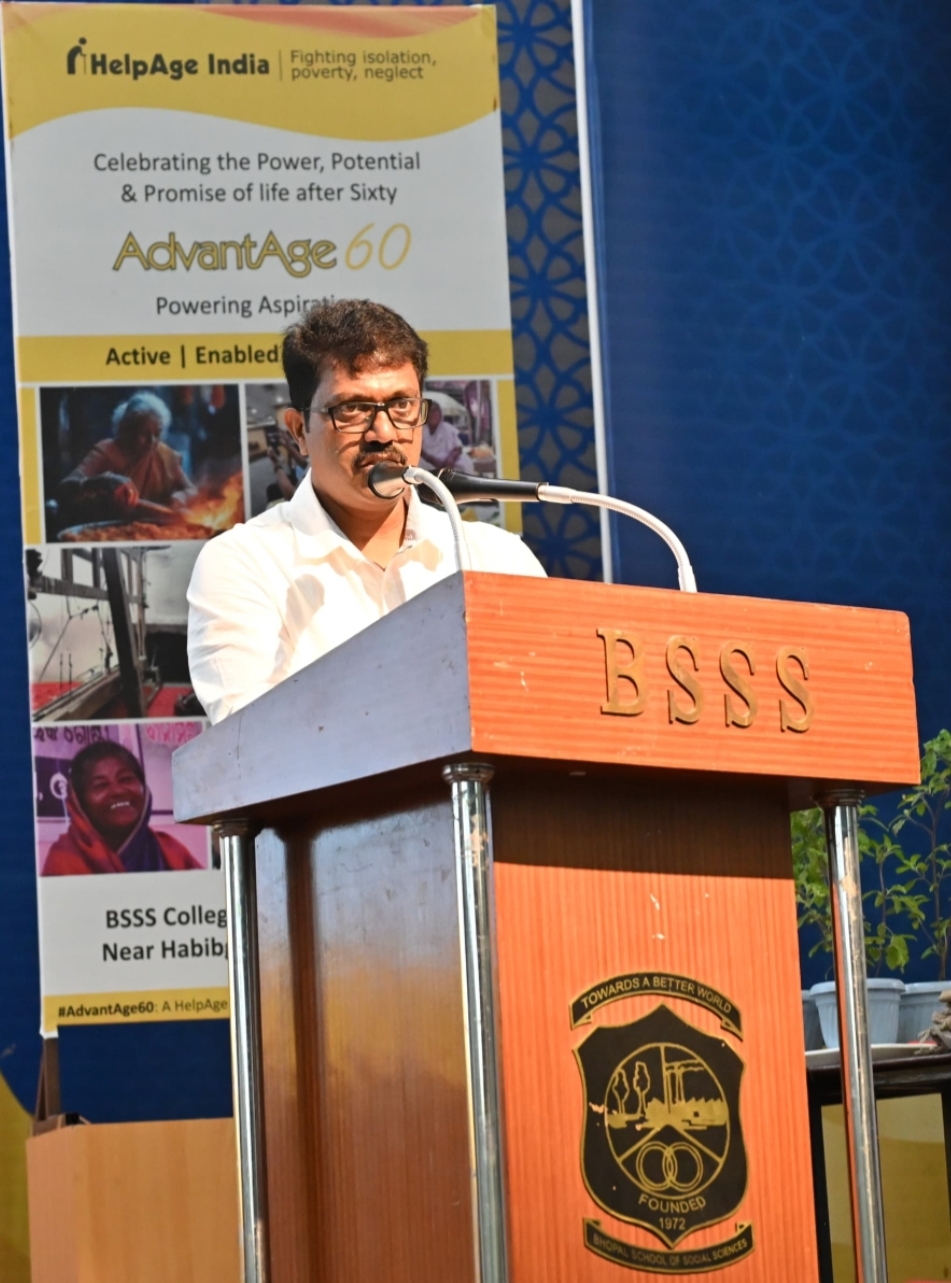 अंतरराष्ट्रीय वरिष्ठ जन दिवस के अवसर पर हेल्पज इंडिया मध्य प्रदेश, भोपाल स्कूल ऑफ़ सोशियल साइंसेज एवं सीनियर सिटीजन एसोसिएशन ने मिलकर एक कार्यक्रम का आयोजन बीएसएस के ऑडिटोरियम में किया। कार्यक्रम की मुख्य अतिथि थीं श्रीमती सरिता बाला प्रजापति (IAS, डायरेक्टर वाल्मी), विशेष अतिथि के रूप में श्री राजीव अग्रवाल (अध्यक्ष, ऑल इंडस्ट्रीज मंडीदीप) डॉक्टर सिस्टर लीमा जैकब (वाइस प्रिंसिपल बीएसएस कॉलेज) श्री शांति स्वरूप सक्सेना (अध्यक्ष, सीनियर सिटीजन एसोसिएशन, अरेरा कॉलोनी) श्री महेंद्रजीत सिंह (ऑल इंडिया रिटायर्ड रेलवे संगठन) श्रीमती विवेकिन पचौरी (डेप्युटी डायरेक्टर सोशल जस्टिस डिपार्टमेंट, मध्य प्रदेश) सुश्री संस्कृति खरे (राज्य प्रमुख हेल्पज इंडिया मध्य प्रदेश) उपस्थित रहे। कार्यक्रम का संचालन वेणु पिल्लई ( वरिष्ठ कार्यक्रम प्रबंधक हेल्पज इंडिया, मध्य प्रदेश) ने किया। कार्यक्रम की शुरुआत दीप प्रज्वलन एवं दीप्ति जोशी (एडमिन, हेल्प एज इंडिया) के सरस्वती वंदना से प्रारंभ हुई। सभी अतिथियों का शाल, श्रीफल एवं तुलसी के पौधे से स्वागत किया गया । सभी अतिथियों ने अपने उद्बोधन में यूथ और वरिष्ठजनों के साम्यता और सायुज्यता पर ज़ोर दिया और यूथ एवं वरिष्ठजनों के मध्य सेतु निर्माण की बात कही। सांस्कृतिक कार्यक्रम की शुरुआत वरिष्ठ कलाकार श्री मोहन अय्यर और बीएसएस कॉलेज की छात्रा कुहू जोशी के गीत एक प्यार का नगमा है से हुई । तत्पश्चात सीनियर सिटीजन एसोसिएशन 10 नंबर के वरिष्ठ महिलाओं ने समूह नृत्य पेश किया । उसके बाद हेल्पएज इंडिया के वेणु पिल्लई और बीएसएस की छात्रा असमी पिल्लई ने आदमी मुसाफिर हूं गीत की प्रस्तुति दी, कार्यक्रम में आगे श्री ए के चौहान ने किसी डिस्को में जाएं गीत पर एकल नृत्य प्रस्तुत किया। तत्पश्चात श्री सुरेंद्र तिवारी सीनियर सिटीजन एसोसिएशन कोलार के सदस्य ने सुरमई अखियों में गीत प्रस्तुत किया। कार्यक्रम के अंत में सभी वरिष्ठ जनों, बीएसएस के छात्र छात्राओं एवं हेल्पएज इंडिया के कार्यकर्ताओं ने सामूहिक नृत्य पेश किया एवं फैशन शो का आयोजन हुआ। कार्यक्रम के अंत में धन्यवाद प्रस्ताव दिया गया।