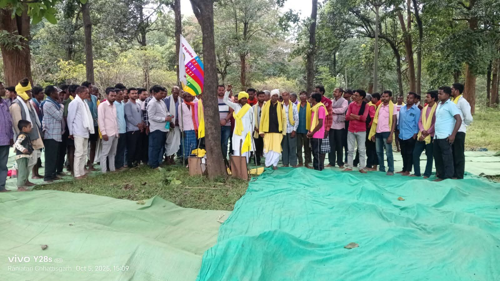 पाली तानाखार :- आज गोंडवाना की वीरांगना महारानी दुर्गावती मंडावी जी की 500 जयंती के शुभ अवसर पर गोंडवाना समग्र विकास क्रांति आंदोलन और आदिवासी एकता परिषद के संयुक्त तत्वधान में ग्राम बीजाडांड में कोयला खदान से प्रभावित होने वाले सभी पंचायतों के ग्रामसभाओं के सदस्यों के द्वारा बैठक आयोजित की गई जिसमें सर्व सम्मति से यह फैसला लिया गया कि जो कोयला खदान कोयला मंत्रालय के द्वारा रूंगटा सांस प्राइवेट लिमिटेड कंपनी को आबंटित किया गया है और उनके आदेशों के माध्यम से अनुविभागीय अधिकारी राजस्व पोड़ी उपरोड़ा के द्वारा 30/09/2025 को जारी निर्देश कोयला खदान खोलने हेतु ग्राम सभा ठहराव प्रस्ताव को आपत्ति दर्ज कर निरस्त करने के लिए महामहिम राष्ट्रपति,राज्यपाल मुख्यमंत्री , जनजाति सलाहकार परिषद को तहसीलदार पसान के माध्यम से ज्ञापन सौंपने का निर्णय लिया गया और महारानी दुर्गावती मंडावी जी की छाया चित्र के समक्ष जल जंगल जमीन को अपने अंतिम सांस तक बचाने के लिए संकल्प लिया गया। इस अवसर पर दीनानाथ आयाम ब्लॉक अध्यक्ष गोंगपा पसान, चंद्रप्रताप पोर्ते सरपंच पुटी पखना, सरवन कुमार मरपची सरपंच प्रतिनिधि तनेरा,बृजलाल पांदो(मरकाम ) अध्यक्ष एकता परिषद ,जयमंगल कोर्राम पंचम सिंह श्याम ,राजकुमार श्याम ,अमर सिंह आनंद नेताम, शिवराम मरावी ,धन सिंह कुरूम,शंकर सिंह मरावी उपसरपंच ,रामेश्वर सिंह कोचे,शिवकुमार मंशराम, सोनू पांडे,शंकर ओलड़ी,इतवार सिंह यूके,रामकुमार रजक,शिव कुमार महंत, जय सिंह मरकाम ,संतोष मसराम, एवं प्रभावित ग्राम बीजाडांड, सुखबहरा, पुटी पखना,झलके, तनेरा, शरमा,senha, अड़सरा, केंदई, तेंदुटिकरा, सिंदूरगढ़ , घाघरा, के ग्रामीण जन सैकड़ों के तादाद में उपस्थित रहे।