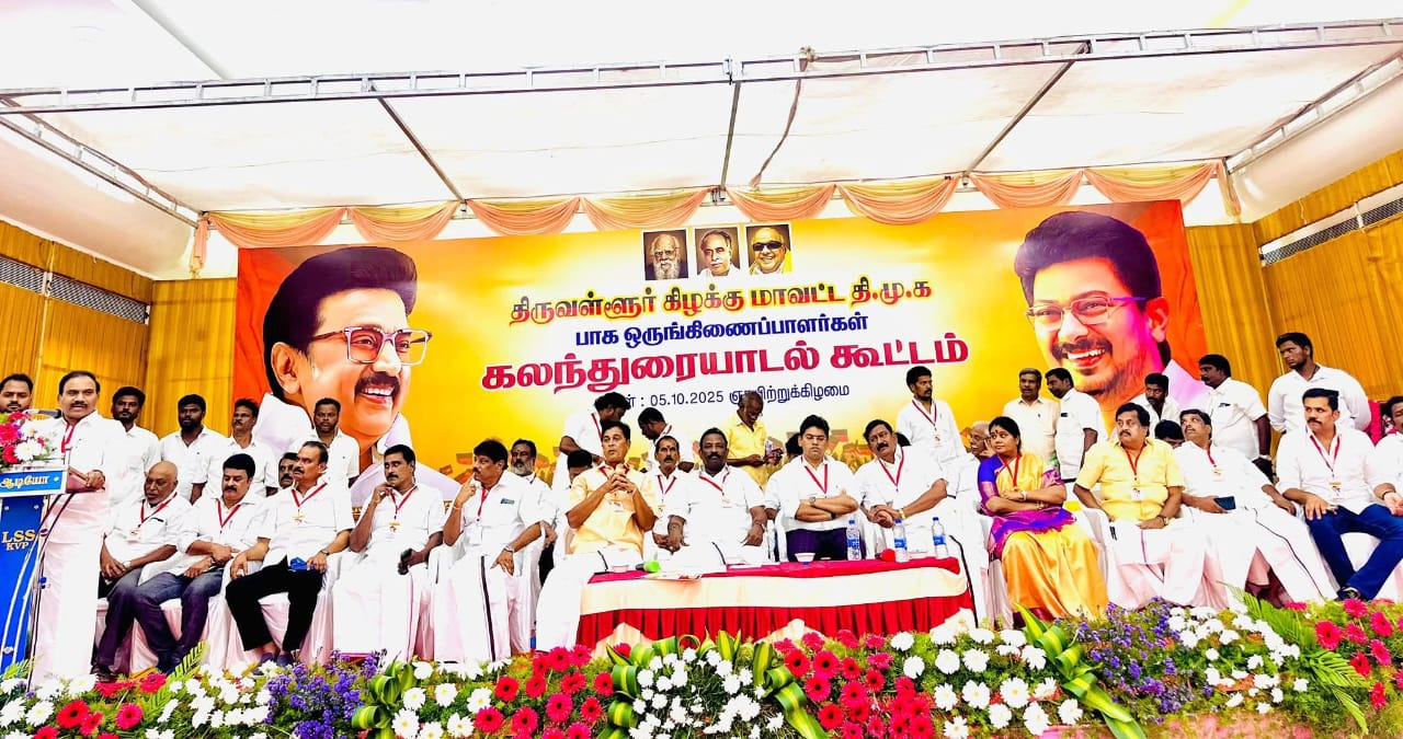 திருவள்ளூர் கிழக்கு மாவட்ட திமுக பொறுப்பாளர் எம்எஸ்கே. ரமேஷ்ராஜ் தலைமையில் நடைபெற்றது,