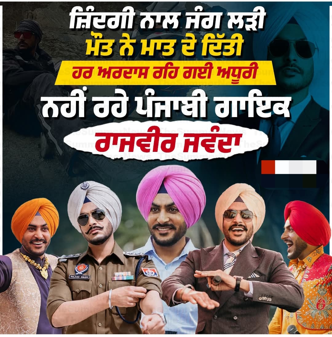 ਜ਼ਿੰਦਗੀ ਨਾਲ ਜੰਗ ਲੜੀ ਮੌ+ਤ ਨੇ ਮਾਤ ਦੇ ਦਿੱਤੀਹਰ ਅਰਦਾਸ ਰਹਿ ਗਈ ਅਧੂਰੀਨਹੀਂ ਰਹੇ ਪੰਜਾਬੀ ਗਾਇਕ ਰਾਜਵੀਰ ਜਵੰਦਾ