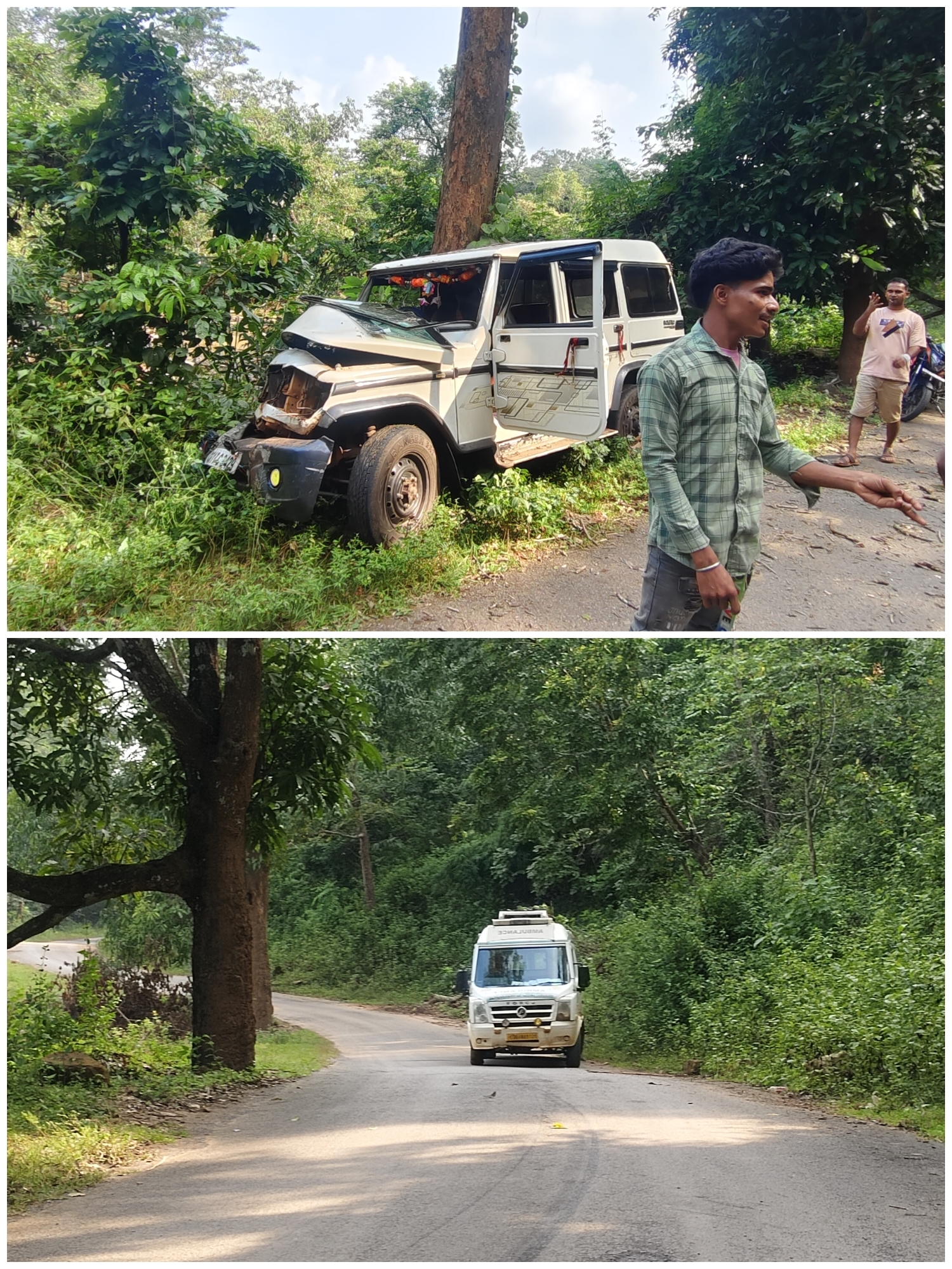 बोलेरो वाहन अनियंत्रित होकर सड़क किनारे पेड़ से टकराया — 108 एम्बुलेंस भी हुई खराब