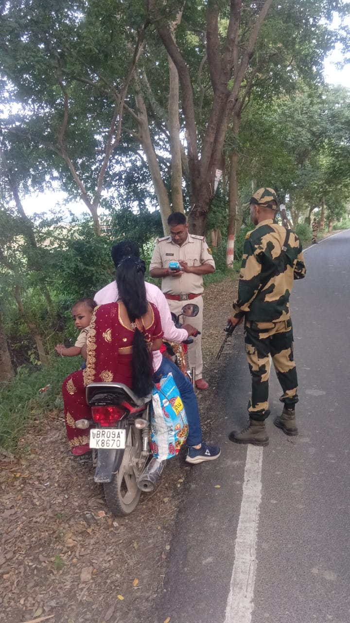वीरपुर (बेगूसराय) बुधवार को बेगूसराय वीरपुर संजात पथ पर वीरपुर के समीप सघन वाहन जांच अभियान चलाया गया। इस संबंध में जानकारी देते हुए वीरपुर थाना अध्यक्ष रविंद्र कुमार ने बताया कि विधानसभा चुनाव को लेकर वाहन जांच अभियान शुरू कर दी गई। इसमें वाईक चालक की कमर डिक्की की तलाशी ली गई। साथ ही वाहनों के कागजात ड्राइविंग लाइसेंस, हेलमेट की भी जांच की गई। साथ ही संदिग्धों से आवश्यक पूछताछ भी की । उन्होंने बताया कि इसमें सैकड़ों वाहनों को सड़क किनारे रोककर तलाशी ली गई। हेलमेट व कागजात दुरस्त नहीं रहने वाले पर जुर्माना की वसूले गए। 20 बाइकों से 20 हजार 500 रूपए जुर्माना वसूले गए। वाहन जांच अभियान में पुलिस अवर निरीक्षक ऋषिकेश भारद्वाज सहित वीरपुर पुलिस व बीएमपी के जवान शामिल थे।