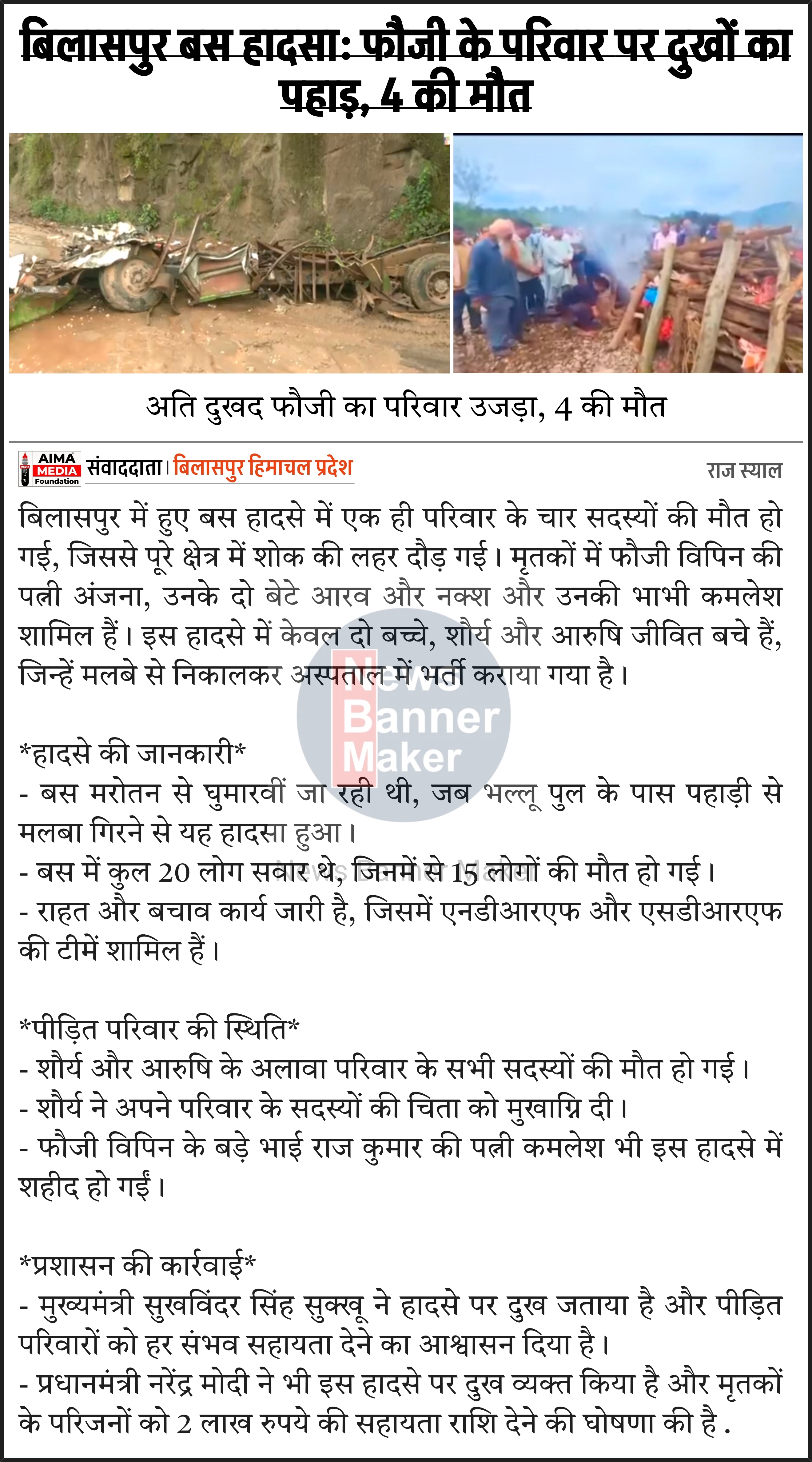 फौजी का परिवार हुआ खत्म एक ही घर से उठी चार अर्थिंया, अति दुखद, बिलासपुर हिमाचल प्रदेश बस हादसे में मृत व्यक्तियों की सूची