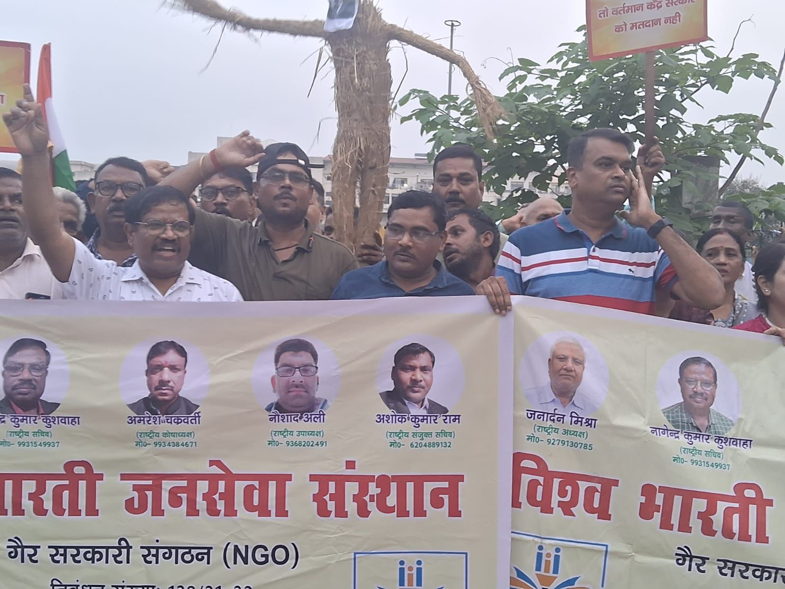 रांची में विश्व भारती जन सेवा संस्थान का विरोध मार्च, सहारा प्रबंधन और केंद्रीय सहकारिता मंत्री के खिलाफ नारेबाजी