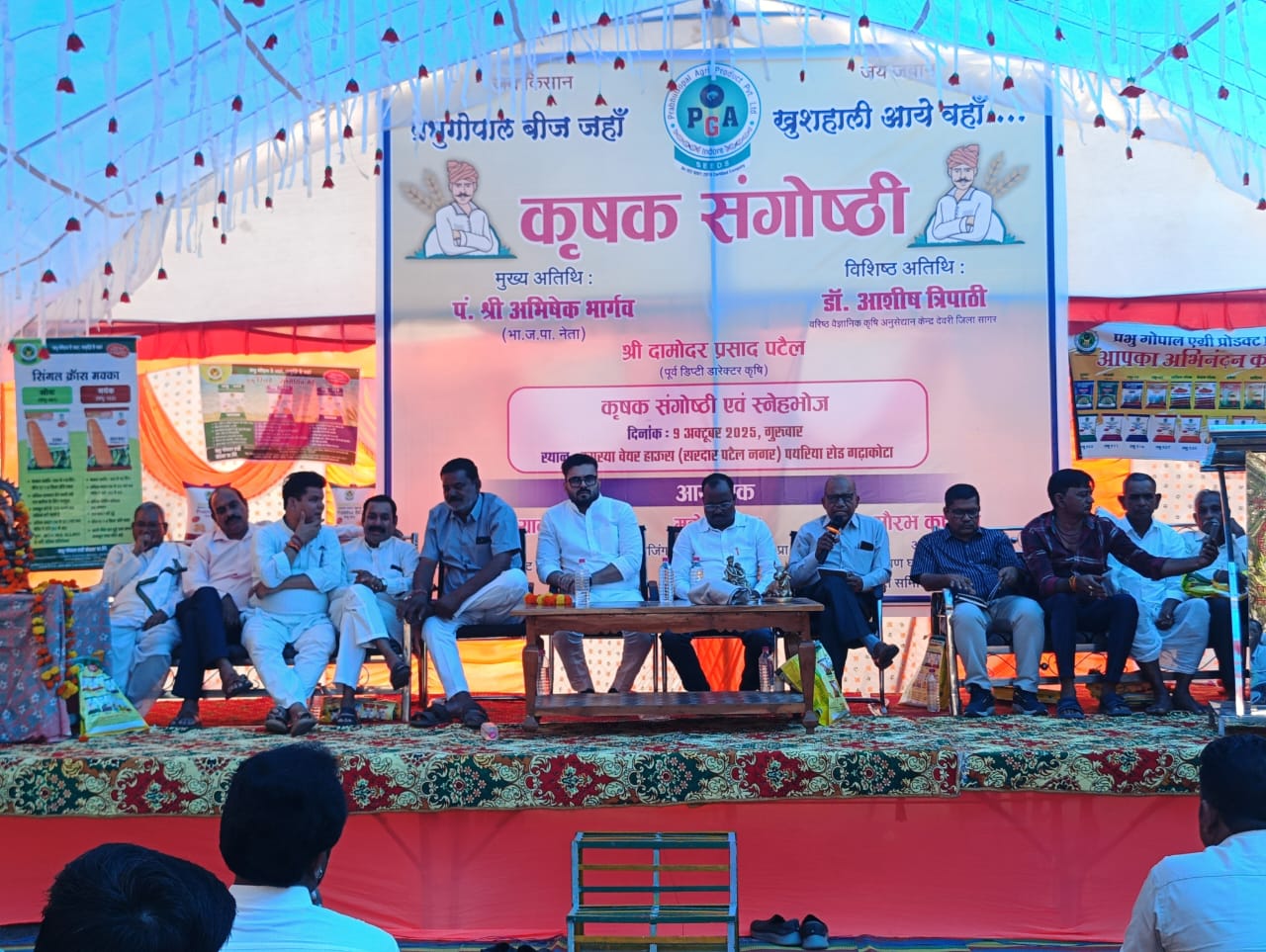 कपस्या वेयरहाउस, सरदार परेल नगर पथरिया रोड गढ़ाकोटा जिला सागर में कृषक संगोष्टी तथा कृषक प्रशिक्षण कार्यक्रम का आयोजन किया गया । जिसमें कृषि वैज्ञानिकों द्वारा आने वाले रवि सीजन के लिये खेत कैसे तैयार करे तथा वीज एवं खाद की संतुलित मात्रा कैसे उपयोग करे यह बताया गया। इसमें मुख्य अतिथि युवा भाजपा नेता श्री अमिषेक भार्गव जी विशिष्ट अतिथि दामोदर पटेल पूर्व उपसंचालक कृषि, कृषि वैज्ञानिक डॉक्टर आशीष त्रिपाठी जी रहे, मुख्य अतिथि अभिषेक भार्गव ने कहा कि किसान भाईयों के लिए खेती करना कर्म ही नहीं, अपितु धर्म भी है। इसलिए किसान भाइयों की मेहनत रंग लाती है तो ही देश में खुशहाली छा जाती है। आज कपस्या वेयरहाउस में नारायण धाम बीज उत्पादन समिति पिपरिया गोपाल द्वारा किसान भाईयों के हित में कार्यक्रम आयोजीत किया है, जो कृषक संगोष्ठी एक बहुत ही प्रशंसनीय कार्य है। इस संगोष्ठी का मुख्य उद्देश्य किसान भाईयों को उत्तम कृषि प्रशिक्षण देना है। हमारे किसान भाई ही हमें अन्न देने का कार्य करते है क्योंकि जिस मिट्टी को किसान अपने हाथों से जोतते हैं, वही मिट्टी देश को जीवित रखती है। आज गढ़ाकोटा नगर में प्रभूगोपाल एग्री.प्रोडक्ट्स प्रा.लि एवं जे.के सीड्स और नारायण धाम बीज उत्पादक सहकारी समिति द्वारा आयोजित कृषक संगोष्ठि एवं प्रशिक्षण कार्यक्रम में मुख्य अतिथि के तौर पर उपस्थित होकर किसानों से संवाद किया। इस अवसर पर दिनेश लहरिया पूर्व अध्यक्ष प्रतिनिधि नगर पालिका , मनोज तिवारी नगर पालिका अध्यक्ष प्रतिनिधि , संजय दुवे पूर्व जनपद अध्यक्ष ,श्री आशाराम सेठ ,श्री राजाराम खेरेया जी ,जनपद अध्यक्ष प्रतिनिधि सुरेश कपस्या सहित क्षेत्र के सेकडो की संख्या में कृषक उपस्थि रहे । उन्होंने गेहू की अनेक वैरायटीयो का प्रदर्शन के किसानो को बताया । जे के सीड्स के डारेक्टर मुकेश पटेल तथा नारायण धाम वीज समिति के अध्यक्ष सौरभ कपस्या ने किसानों को विभिन्न जानकारी दीं। सभी का आभार स्वागत सुरेश कपस्या अध्यक्ष प्रतिनिधि जनपद पंचायत रहली ने व्यक्त किया।