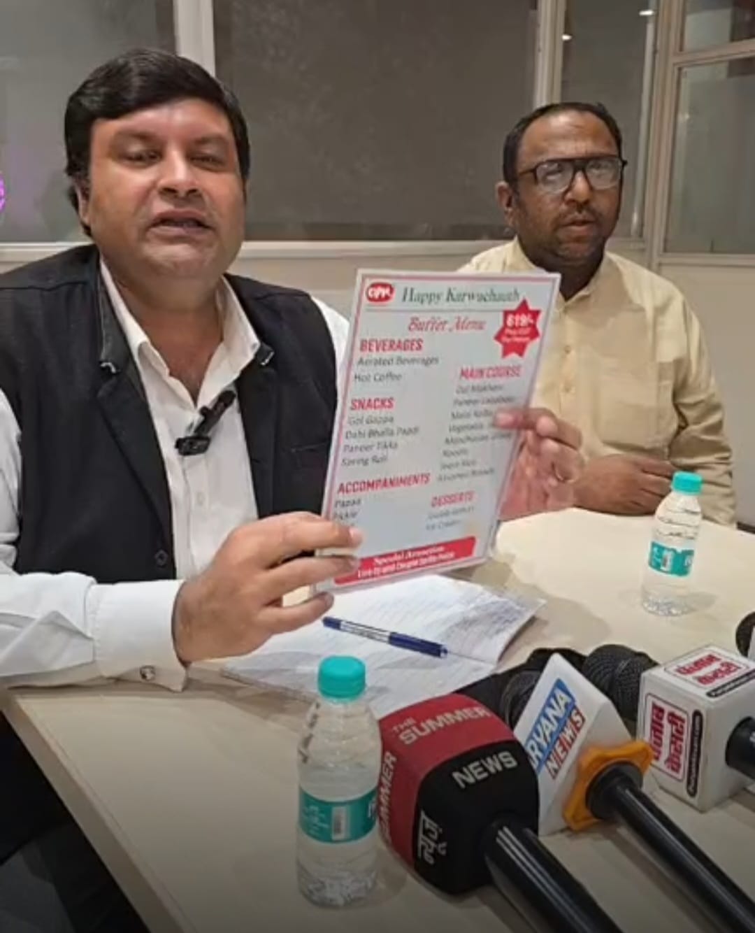 करवाचौथ के अवसर पर ओम स्वीट्स पलवल पर आने वाले कपल्स का एक नये अंदाज में स्वागत होगा । ओम स्वीट्स पर हुई प्रेस कॉन्फ्रेंस में ये जानकारी देते हुए ओम स्वीट्स के जनरल मैनेजर श्री राजीव पूरी ने बताया कि करवाचौथ के पर्व पर ओम स्वीट्स पलवल ने आज की युवा पीढ़ी की जरूरतों को देखते हुए एक अलग और नए अंदाज में कपल्स को एंजॉयमेन्ट करने के लिये नार्मल रेट पर एक वेज बफे सिस्टम खाने का इंतजाम किया है, जिसका समय रात को आठ बजे से होगा । इसमें अनलिमिटेड स्नैक्स, चाटपापड़ी,शुद्ध वेज खाना ऒर स्वीट डिश शामिल हैं। इसके अलावा खाने के साथ ही डी जे म्यूजिक पर कपल डांस का भी पूरा इंतज़ाम है, जिस पर खाने के साथ साथ ही कपल डांस करते हुए करवाचौथ के त्योहार का भरपूर आनंद ले सकते हैं।