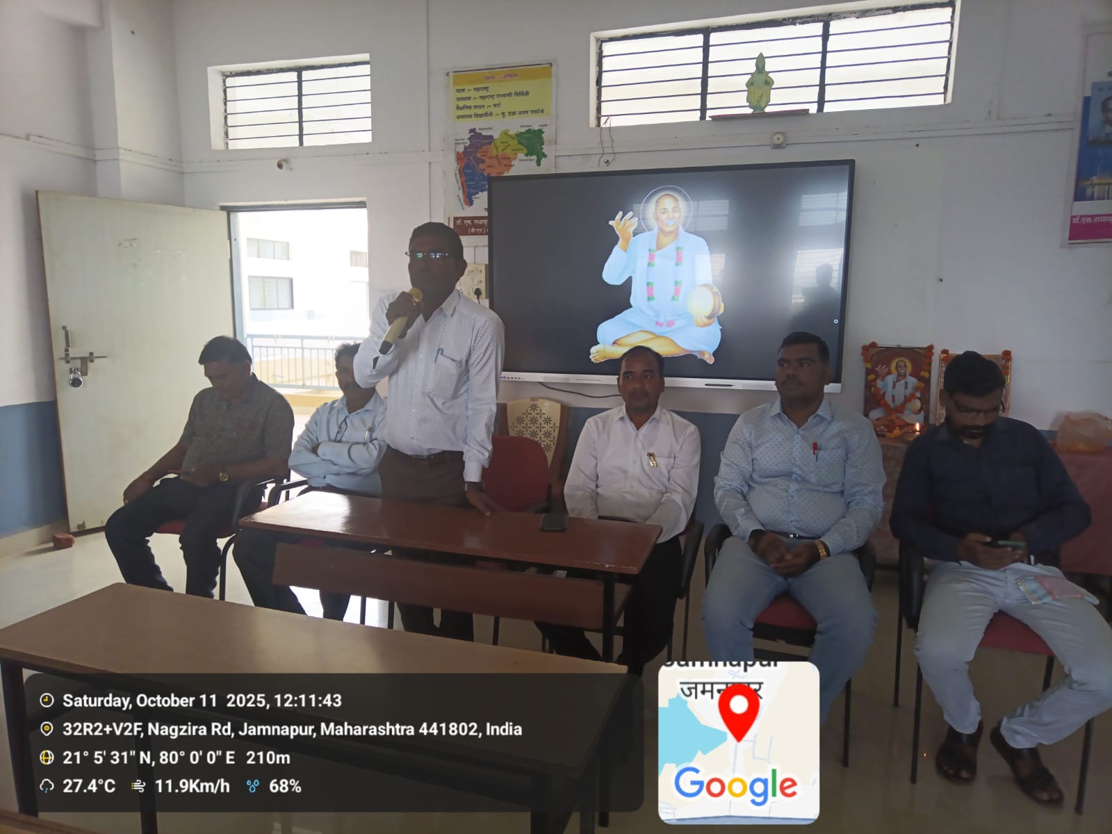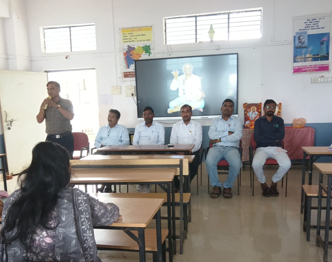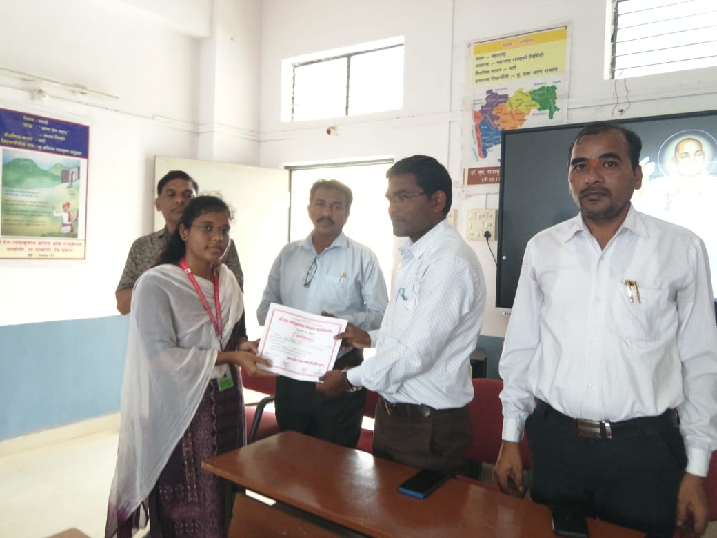 डॉ. एस. राधाकृष्णन कॉलेज ऑफ एज्युकेशन साकोली येथे विद्यापीठ गीतातून राष्ट्रसंत तुकडोजी महाराजांना अभिवादन दि.11/10/2025 रोजी सामूहिक विद्यापीठ गीत गायन कार्यक्रम आयोजित करण्यात आला.कार्यक्रमाच्या अध्यक्षस्थानी प्रा. अक्षय पुस्तोडे सर होते. प्रमुख अतिथी म्हणून प्राचार्य खेमराज राऊत सर ता. नि. अ. वि. साकोली, प्रा गेंदलाल इंदुलकर सर, प्रा. चेतन कापगते सर, श्री. विनोद भोवते सर, श्री सचिन खोब्रागडे सर, तसेच इतर प्राध्यापक उपस्थित होते. कार्यक्रमाची सुरुवात दीप प्रज्वलन आणि राष्ट्रसंत तुकडोजी महाराज यांच्या प्रतिमेला पुष्प अर्पण करून करण्यांत आली. यानंतर विद्यार्थ्यांनी सामूहिक स्वरात विद्यापीठ गीत सादर केले. या गीतातून राष्ट्रसंत तुकडोजी महाराज यांचे सामाजिक आध्यात्मिक आणि मानवतेचे संदेश भावपूर्ण स्वरूपात मांडले गेले. कार्यक्रमात उपस्थित सर्व प्राध्यापकांनी तुकडोजी महाराज यांच्या कार्याची आणि विचारांची प्रेरणादायी माहिती आपल्या भाषणांमधून दिली. याप्रसंगी कार्यक्रमात उपस्थित विद्यार्थ्यांना प्रमाणपत्र देऊन गौरविण्यात आले. प्रस्तुत कार्यक्रमाचे सूत्रसंचालन प्रीती सोनवणे तसेच आभार प्रदर्शन साक्षी मेंढे या छात्र अध्यापिकांनी केले. हा कार्यक्रम यशस्वी करण्यासाठी सर्व शिक्षकेतर कर्मचारी व बीएड प्रथम वर्ष तसेच बीएड द्वितीय वर्षाच्या विद्यार्थ्यांनी परिश्रम घेतले.