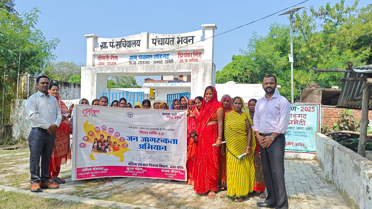 *आज दिनांक 11.10.2025 को जिलाधिकारी महोदय, मुख्य विकास अधिकारी महोदय के मार्गदर्शन एवं जिला प्रोबेशन अधिकारी *श्री सात्विक श्रीवास्तव (उपजिलाधिकारी/जिला प्रोबेशन अधिकारी) महोदय के निर्देशानुसार मिशन शक्ति -5.0 अभियान ब्लॉक स्तर के अन्तर्गत ब्लॉक शाहगढ़* , जनपद अमेठी में *शक्ति संवाद* का आयोजन किया गया, जिसमे *कन्या सुमंगला योजना,उत्तर प्रदेश मुख्यमंत्री बाल सेवा योजना कोविड व सामान्य, स्पॉन्सरशिप योजना तथा पति की मृत्युपरांत महिला पेंशन के लाभार्थी बच्चों व महिलाओं के साथ संवाद कार्यक्रम का आयोजन* किया गया। कार्यक्रम में *बच्चों व महिलाओं की आवेदन में आने वाली चुनौतियों और उनके समाधानों पर विचार - विमर्श किया गया तथा योजनाओं के बारे में विस्तृत जानकारी पंपलेट बांटकर प्रदान की गई*। विभागीय कार्यक्रम के अनुसार *जेंडर विशेषज्ञ राकेश कुमार यादव के द्वारा महिला कल्याण विभाग से मिल रही सभी कल्याणकारी योजनाओं की जानकारी दी गई तथा साथ ही लाभार्थी बच्चों और महिलाओं की पेंशन , कन्या सुमंगला योजना आदि योजनाओं का त्वरित समाधान कैंप के माध्यम से किया गया जो आवेदन के पात्र थे उनको आवेदन करने के लिए प्रोत्साहित किया गया जिसमें मिशन शक्ति के अंतर्गत डीएमसी द्वारा महिलाओ को सभी हेल्पलाइन नंबर यथा आपातकालीन सेवा 112, महिला हेल्पलाइन 181, एंबुलेंस सेवा 108, वूमेन पावर लाइन 1090, चाइल्ड हेल्पलाइन 1098, मुख्यमंत्री हेल्पलाइन 1076, आदि नंबरों के बारे में भी अवगत कराया गया*। इस अवसर पर *डीएमसी ऋषि कुमार , जेंडर विशेषज्ञ राकेश कुमार यादव, ग्राम प्रधान श्रीमती रीता कश्यप, पंचायत सहायक श्रीमती नीलम मौर्या, बच्चियां, महिलाएं* आदि मौजूद रहीं।