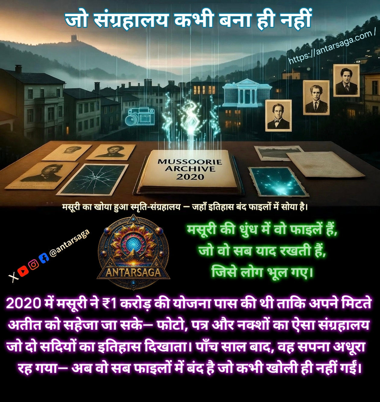 संग्रहालय का सपना कोरोना महामारी और बजट कटौती के कारण अधूरा रह गया। 2021 के लॉकडाउन में पैसों का इस्तेमाल सफाई और स्वास्थ्य के लिए होने लगा, जिस वजह से यह योजना फाइलों में ही बंद रह गई। न जमीन मिली, न टेंडर निकले, न कोई रिपोर्ट आई। आज, लगभग पाँच साल बाद भी मसूरी संग्रहालय सिर्फ एक प्रस्ताव ही है। ऐतिहासिक सामग्री अभी भी निजी मकानों, नगर कार्यालय की अलमारियों और डिजिटल प्लेटफ़ॉर्म जैसे pahar.in या British Library Archives में बिखरी पड़ी है।