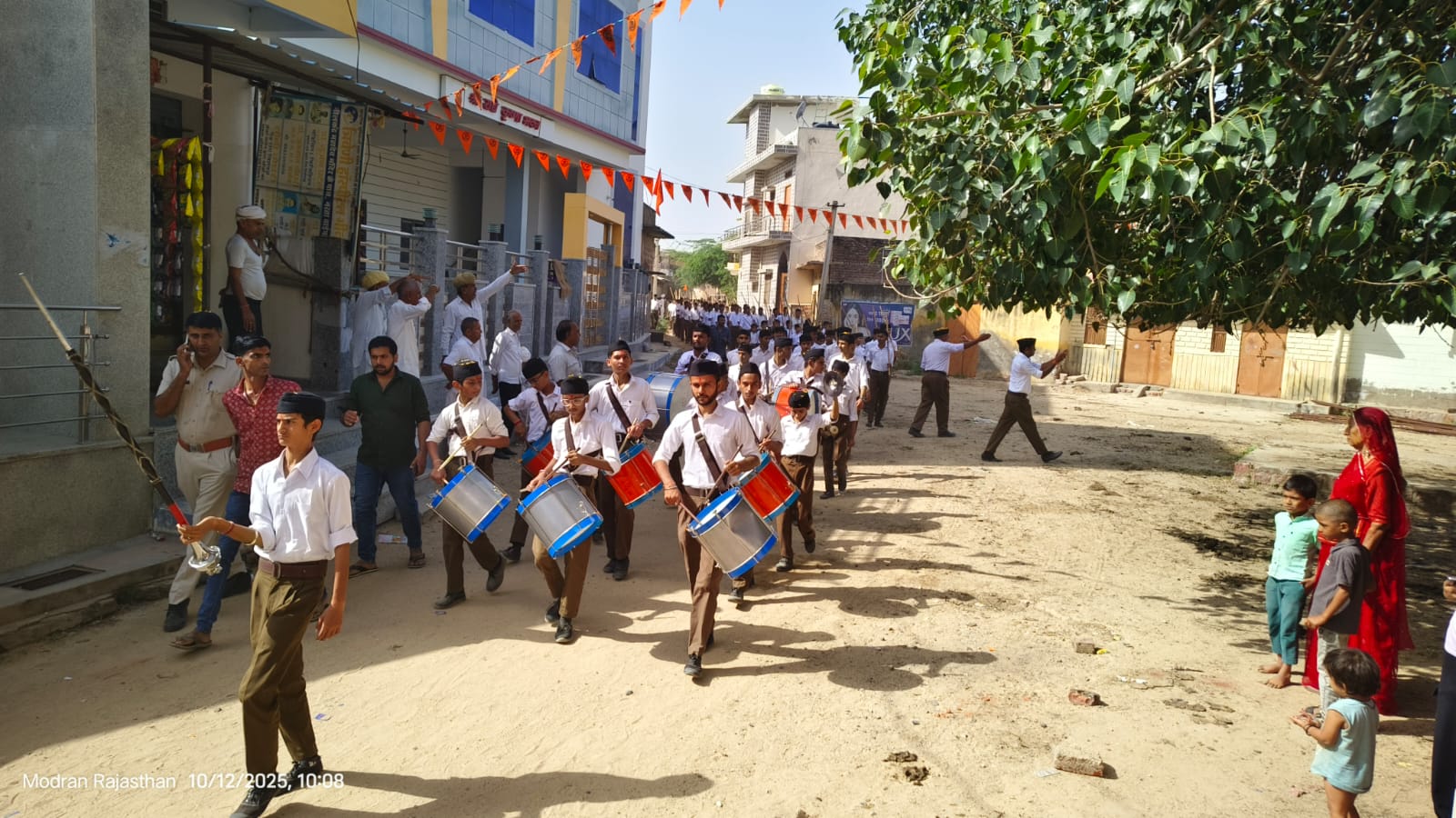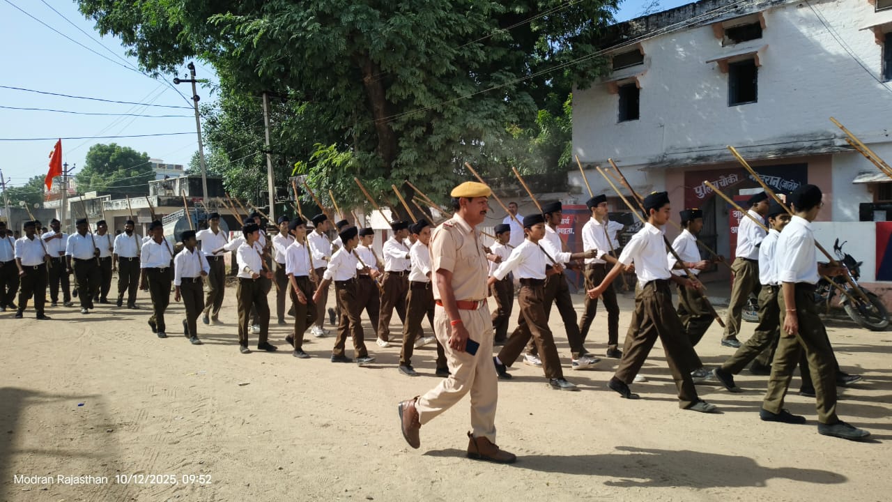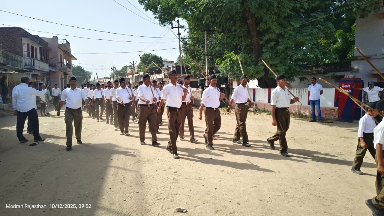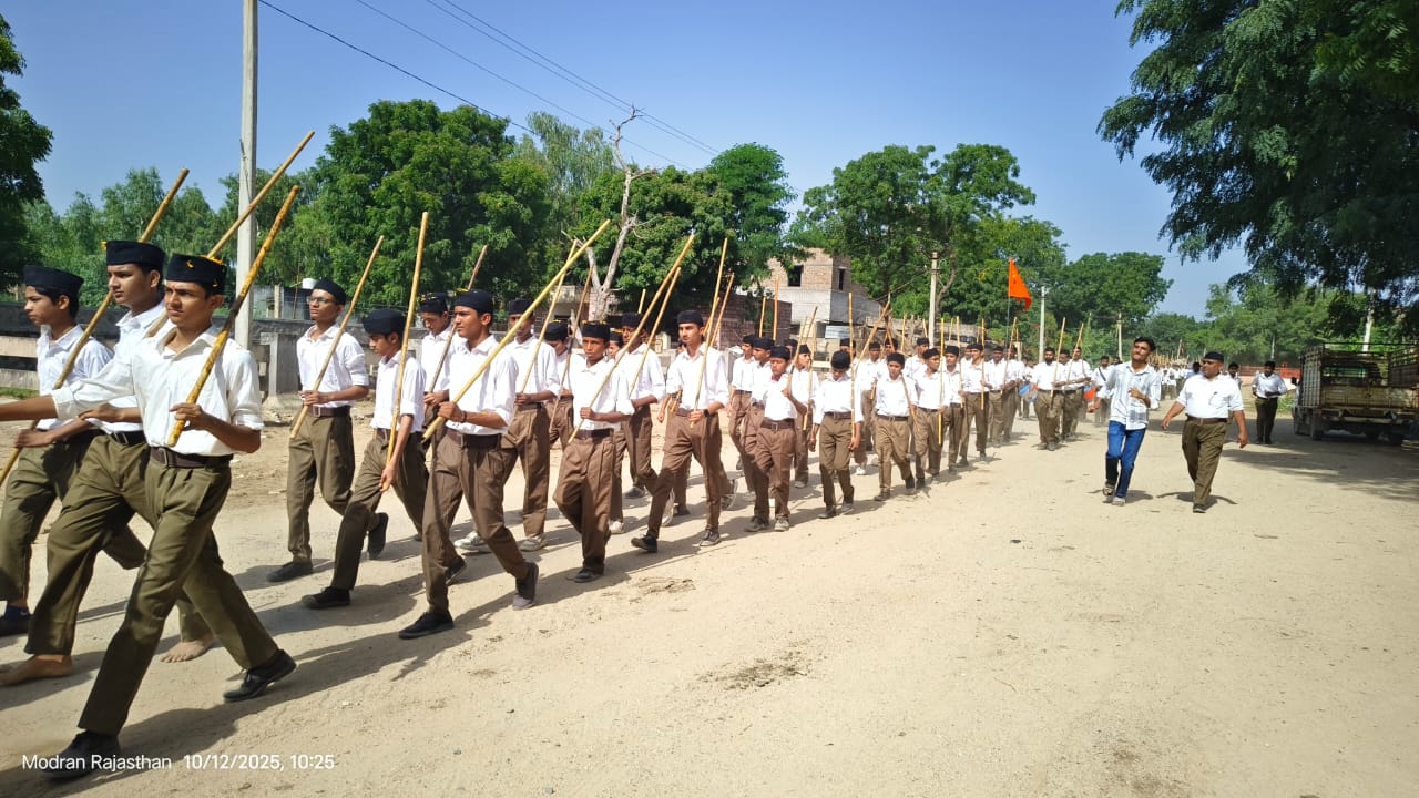 मोदरान, 12 अक्टूबर।राष्ट्रीय स्वयंसेवक संघ के शताब्दी वर्ष के उपलक्ष्य में रविवार को मोदरान नगर में विजया दशमी उत्सव के अवसर पर भव्य पथ संचलन का आयोजन किया गया। इस पथ संचलन में हजारों स्वयंसेवकों ने भाग लिया और अनुशासन, संगठन और राष्ट्रभक्ति का अद्भुत प्रदर्शन किया।