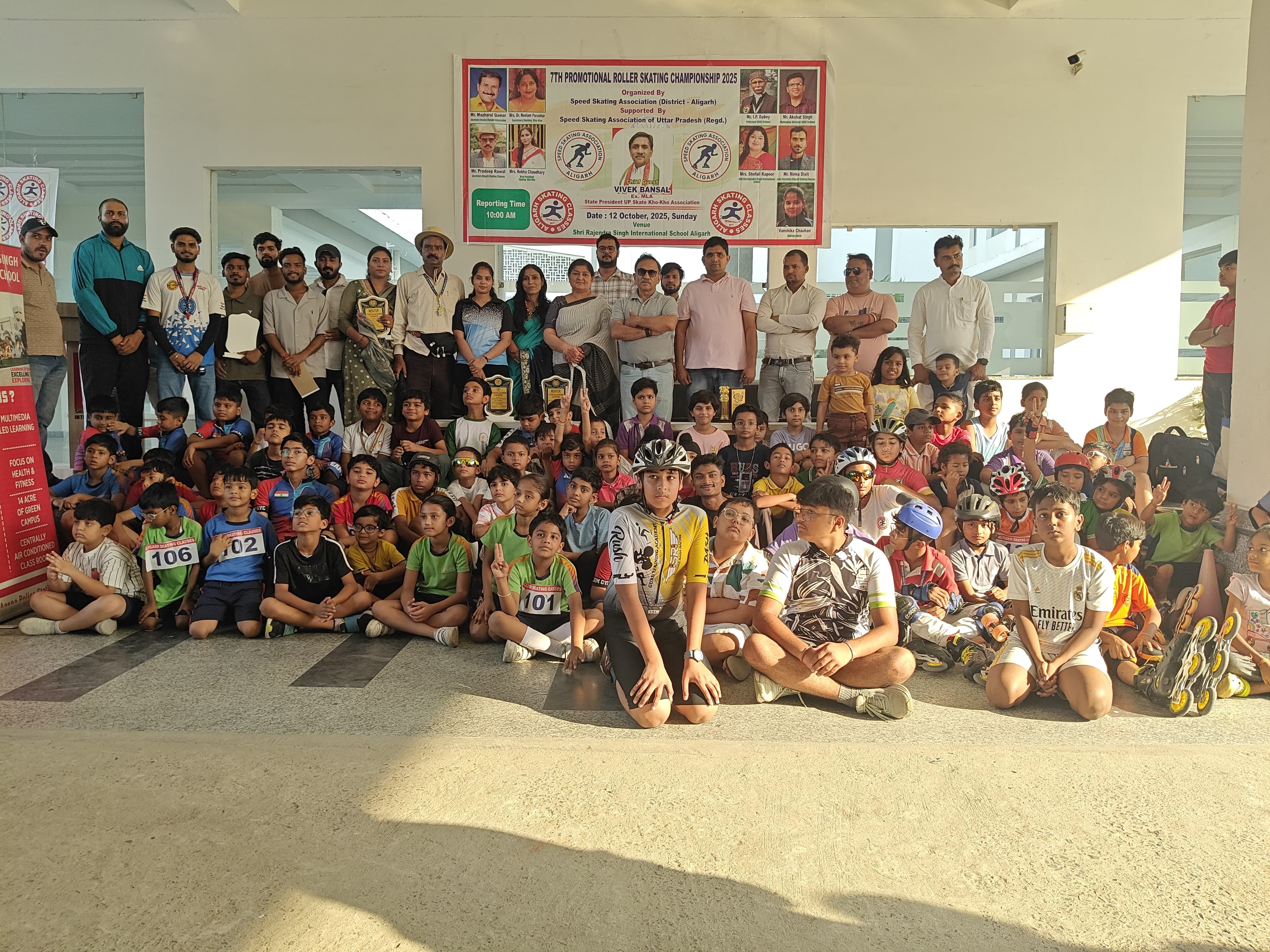 श्री राजेंद्र सिंह इंटरनेशनल स्कूल अलीगढ़ में 7th जिला स्तरीय प्रमोशनल रोलर स्केटिंग चैंपियनशिप 2025 संपन्न हुई।