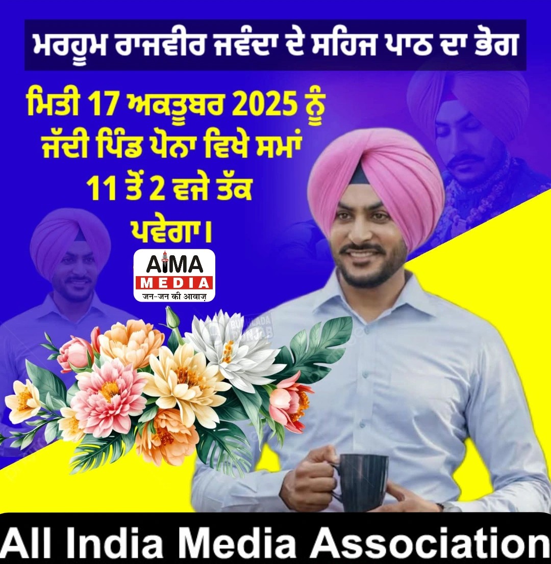 ਮਰਹੂਮ ਰਾਜਵੀਰ ਜਵੰਦਾ ਦੇ ਸਹਿਜ ਪਾਠ ਦਾ ਭੋਗ ਮਿਤੀ 17 ਅਕਤੂਬਰ 2025