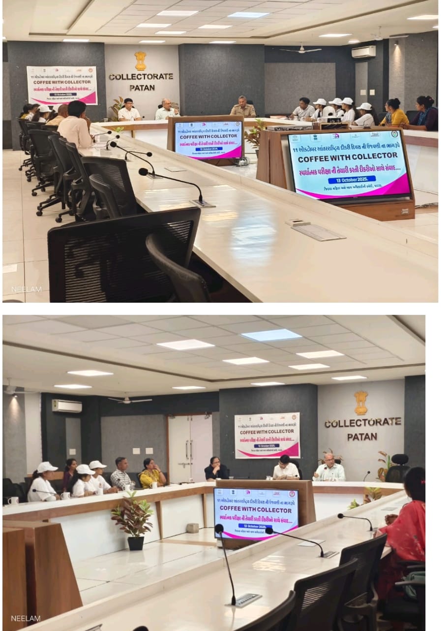 આજરોજ આંતરરાષ્ટ્રીય દીકરી દિવસના ઉપક્રમે બેટી બચાઓ બેટી પઢાઓ યોજનાના ભાગરૂપે જિલ્લા કલેકટરશ્રી તુષાર ભટ્ટના અધ્યક્ષસ્થાને ન્યૂ કોન્ફરન્સ હોલ, કલેકટર કચેરી, પાટણ ખાતે “કોફી વિથ કલેક્ટર” કાર્યક્રમ તેમજ મિશન શક્તિ યોજના અંતર્ગત પાટણ જિલ્લા દેખરેખ અને નિયંત્રણ સમિતિની બેઠક યોજાઈ હતી.
