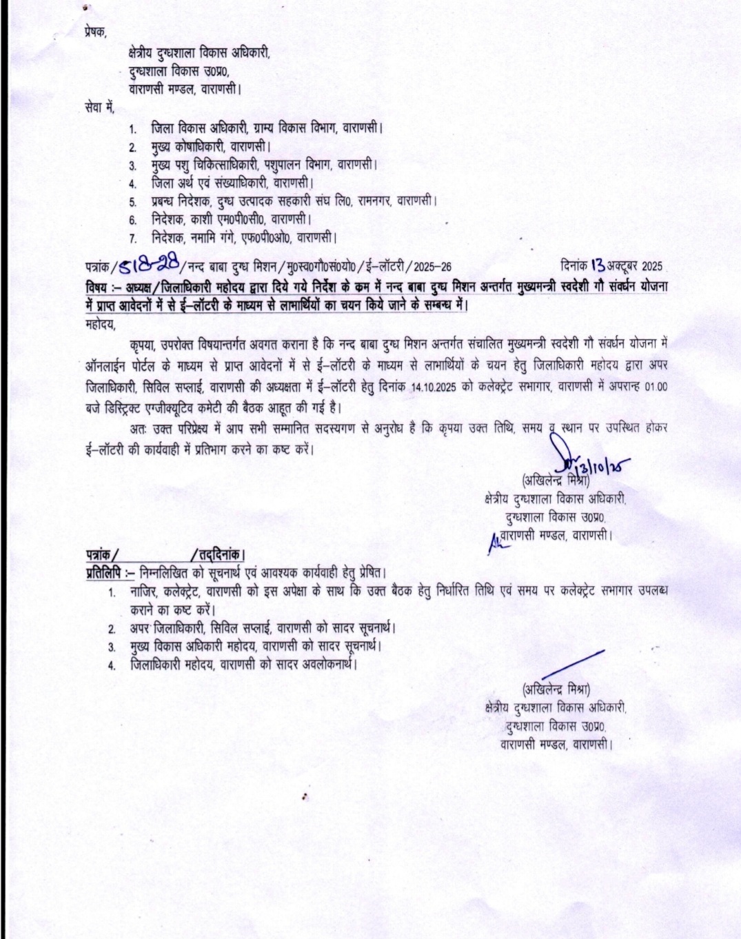 नन्द बाबा दुग्ध मिशन के अन्तर्गत "मुख्यमंत्री स्वदेशी गौ संबर्धन योजना -2025-26" के लाभार्थियों का चयन लाटरी के द्वारा किया गया।