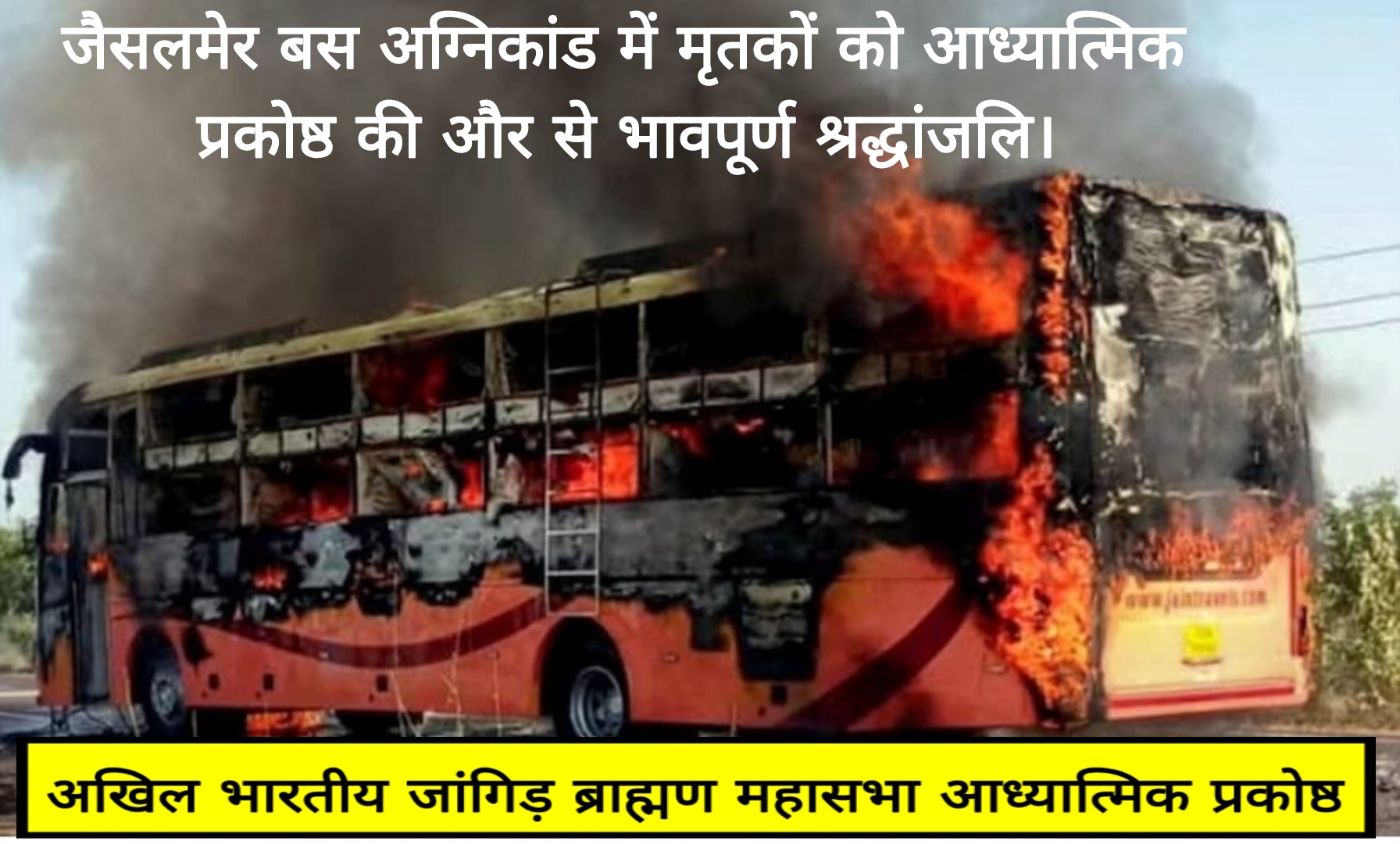अखिल भारतीय जांगिड़ ब्राह्मण महासभा आध्यात्मिक प्रकोष्ठ ने जैसलमेर बस अग्निकांड पर जताया शोक