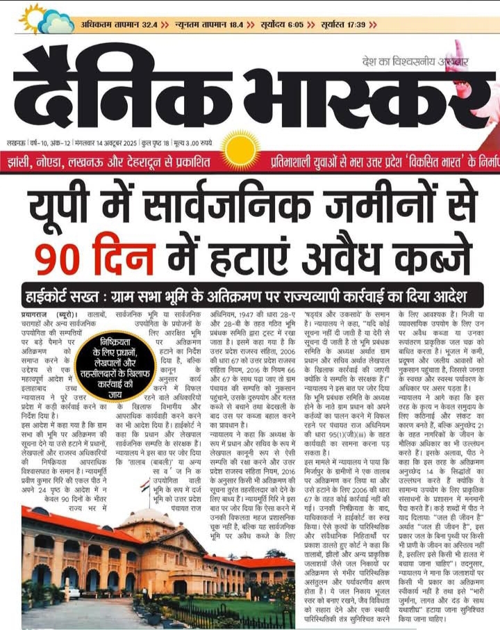📰 उत्तर प्रदेश सरकार का बड़ा ही सराहनीय कदम #हाईकोर्ट के आदेश के साथ स्पष्ट— 90 दिनों में हटें सभी सरकारी भूमि पर के अतिक्रमण