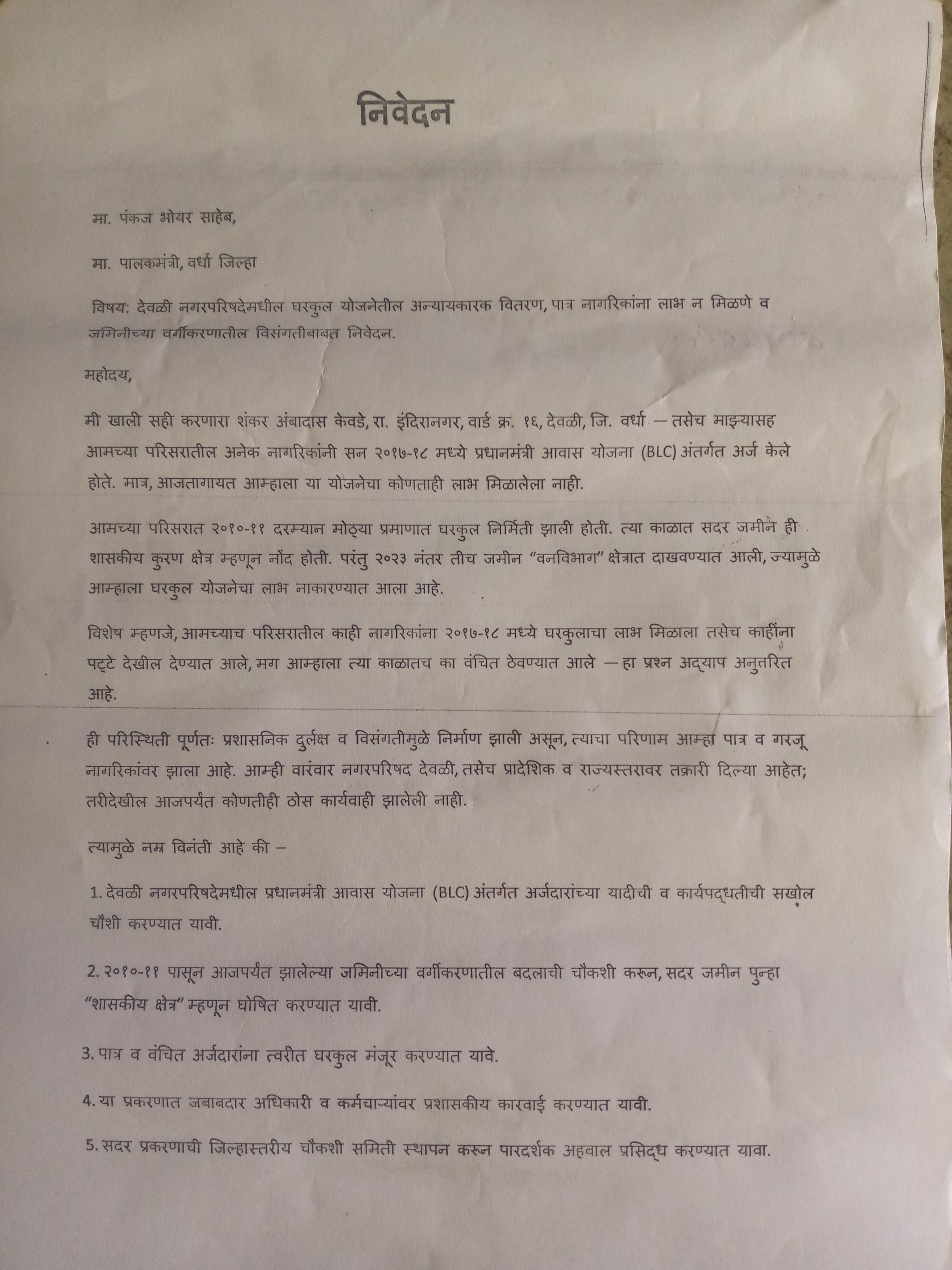 . “देवळी नगरपरिषद विरोधात नागरिकांचा आक्रोश — न्याय कुठे मागायचा?”
