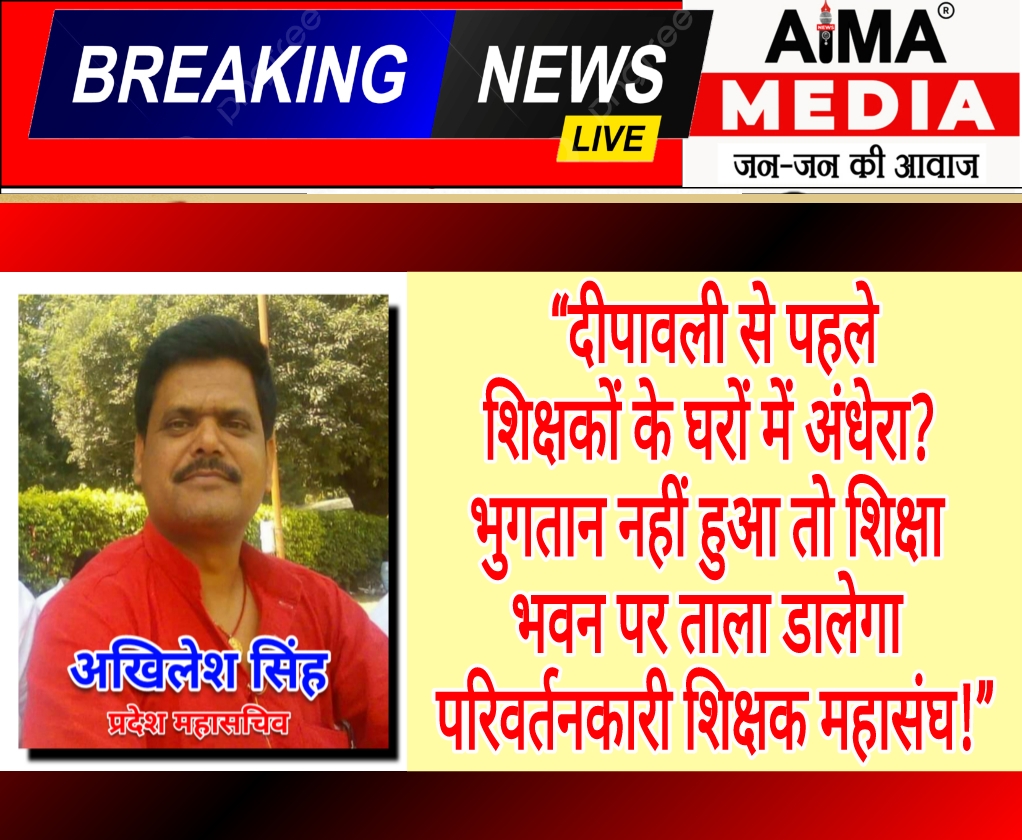рдкрд░рд┐рд╡рд░реНрддрдирдХрд╛рд░реА рд╢рд┐рдХреНрд╖рдХ рдорд╣рд╛рд╕рдВрдШ рдиреЗ рдЪреЗрддрд╛рд╡рдиреА рджреА рд╣реИ рдХрд┐ рдЕрдЧрд░ рджреАрдкрд╛рд╡рд▓реА рд╕реЗ рдкрд╣рд▓реЗ рд╢рд┐рдХреНрд╖рдХреЛрдВ рдХрд╛ рд▓рдВрдмрд┐рдд рд╡реЗрддрди рднреБрдЧрддрд╛рди рдирд╣реАрдВ рдХрд┐рдпрд╛ рдЧрдпрд╛ рддреЛ рд╢рд┐рдХреНрд╖рд╛ рднрд╡рди рдореЗрдВ рддрд╛рд▓рд╛рдмрдВрджреА рдЖрдВрджреЛрд▓рди рдХрд┐рдпрд╛ рдЬрд╛рдПрдЧрд╛ред