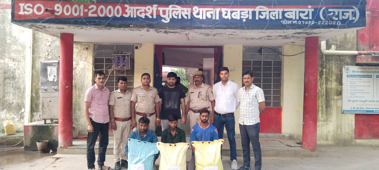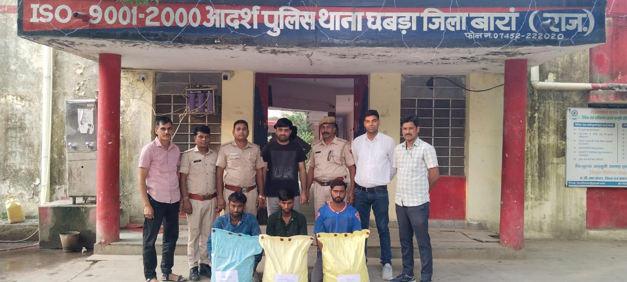 श्रीमान जिला कलेक्टर महोदय जिला बारां व श्रीमान जिला पुलिस अधीक्षक महोदय जिला बारां श्री अभिषेक अदांसु के आदेश की पालना में बारां जिले में विधानसभा उपचुनाव की आदर्श आचार संहिता एवं विशेष अभियान के मद्देनजर अवैध एवं नाजायज हथकड शराब के विरूध्द चलाये जा रहे अभियान के तहत श्री राजेश चौधरी अति० पुलिस अधीक्षक जिला बारां व श्री विकास कुमार वृताधिकारी वृत छबडा के निर्देशन में श्री राजेश कुमार खटाना पु०नि० थानाधिकारी थाना छबडा मय टीम एवं आबकारी विभाग के श्री मदनलाल प्रहराधिकारी छबडा मय टीम के द्वारा आज दिनांक 17.10.2025 को संयुक्त कार्यवाही करते हुये थाना छबडा के ग्राम लक्ष्मीपुरा में अवैध हथकड शराब की कार्यवाही हेतु दबिश दी गई। दौराने दबिश ग्राम लक्ष्मीपुरा मे हडकंप मच गया तथा लोग घर छोडकर भाग गये। दबिश की कार्यवाही के दौरान लगभग 30,000 लीटर वाश व 18 भट्टीयों को नष्ट कर अवैध हथकड शराब बनाने के उपकरण जप्त किये गये। थाना छबडा पर आबकारी एक्ट में 03 प्रकरण दर्ज किये गये। थाना छबडा द्वारा पूर्व मे भी अवैध हथकड शराब के विरूद्ध प्रभावी विधिक कार्यवाही कर सैकडों लीटर अवैध देशी हथकड शराब जप्त की जा चुकी है। आगे भी कार्यवाही जारी रहेगी। आमजन से अपील है की हथकड शराब जान लेवा हो सकती है। इससे बचे तथा इसके विरूद्ध पुलिस को सुचना देवे।
