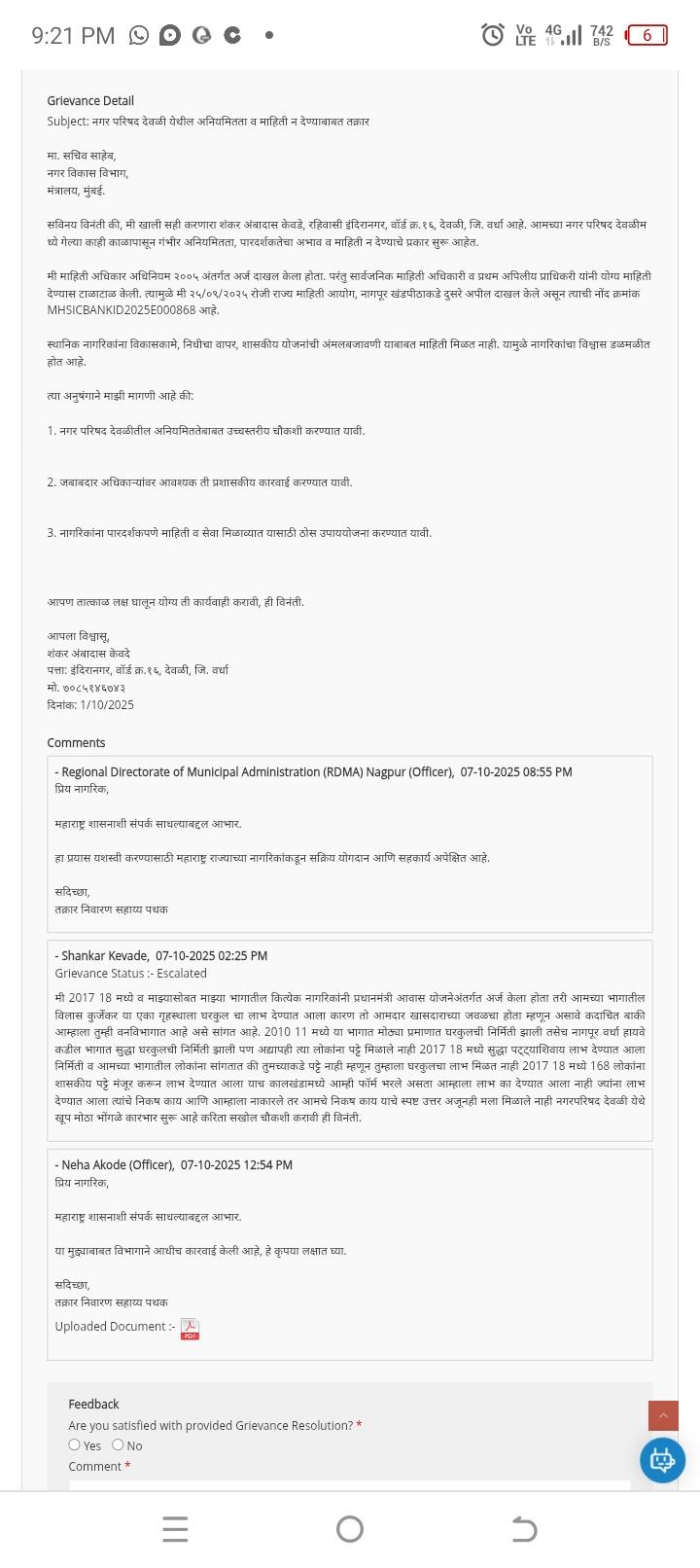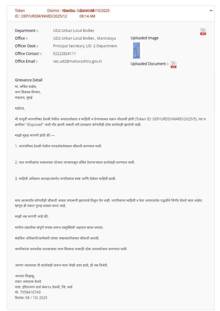 ही परिस्थिती पूर्णतः प्रशासनिक दुर्लक्ष व विसंगतीमुळे निर्माण झाली असून, त्याचा परिणाम आम्हा पात्र व गरजू नागरिकांवर झाला आहे. आम्ही वारंवार नगरपरिषद देवळी, तसेच प्रादेशिक व राज्यस्तरावर तक्रारी दिल्या आहेत; तरीदेखील आजपर्यंत कोणतीही ठोस कार्यवाही झालेली नाही.
