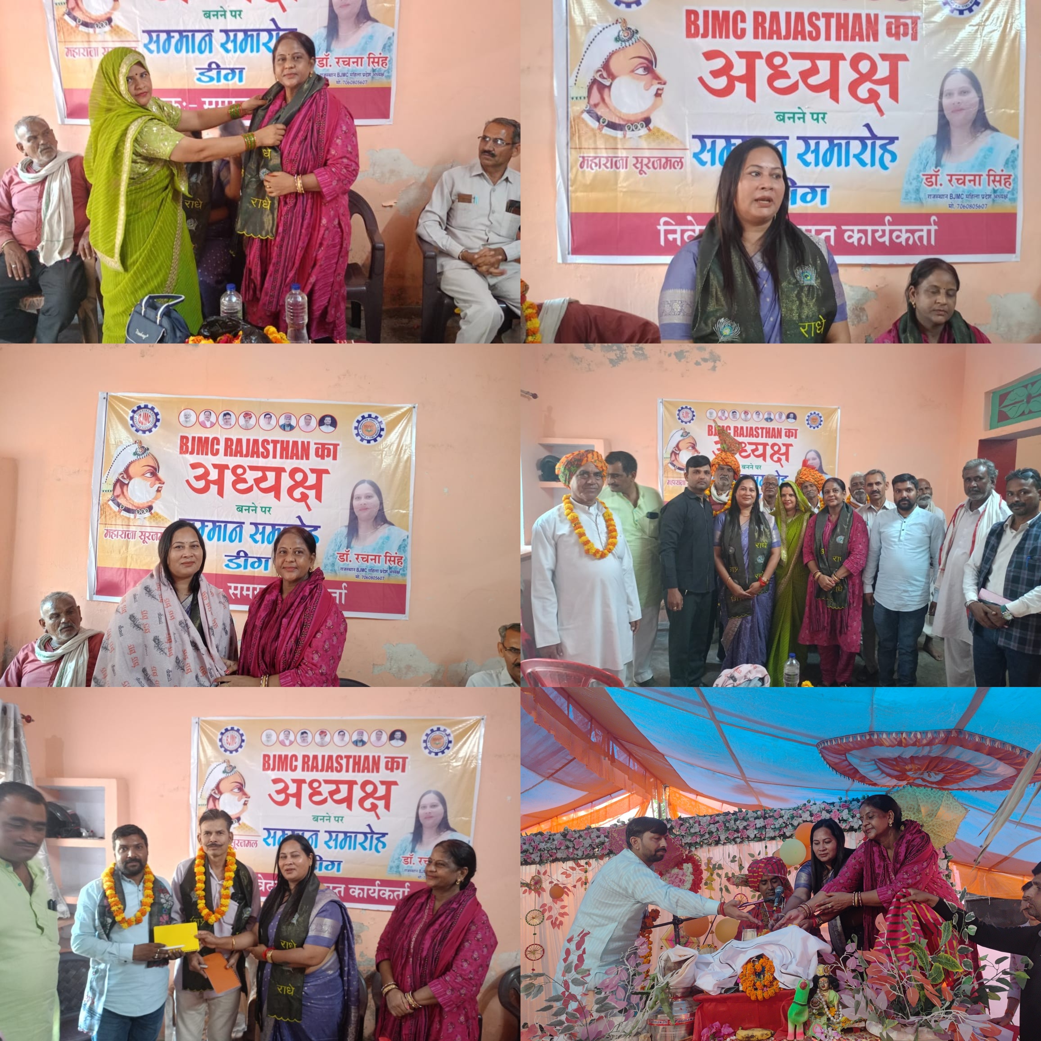डीग के कुम्हेर तहसील के डहरा गांव में बीजेएमसी अध्यक्ष रचना सिंह के पधारने पर सामाजिक कार्यकर्ता राजेश फौजदार और अनेक ग्रामीगवासियों ने स्वागत और सम्मान किया। इस अवसर पर मंच संचालन सामाजिक कार्यकर्ता राजेश फौजदार डहरा ने किया। एवं मंच का संबोधन रामनिवास एवं सत्यवीर सिंह जिलेदार एवं सविता फौजदार ने किया उनका धन्यवाद रामभरोसी लाल कटारा एवं मेघ श्याम फौजदार ने किया। रचना सिंह ने बताया कि मुझे मजदूर, किसान, गरीव वर्ग पर हो रहे अत्याचार को राकने के लिए बीजेएमसी अध्यक्ष बनाया है जहा कही भी मजदूर वर्ग पर अत्याचार हो रहा हो, किसी का पेमेंट नहीं हो रहा हो, जबरजस्ती काम कराया जा रहा हो, काम की जगह पर किसी मजदूर वर्ग को लगाया जा रहा हो और उसके स्थान पर डाक्यूमेंट्स किसी दूसरे के लगाकर फर्जीवाडा किया जा रहा हो उसे रोकने के लिए मैं हमेशा मजदूर वर्ग के साथ खडी रहूंगी। परंतु इसके लिए पहले आम जनता को, मजदूर वर्ग को सजग रहना होगा, जानकारी पूरी रखनी होगी, एकता बनाकर रखनी होगी, रचना सिंह ने बताया कि मैंने अनेक संगठनों में काम किया है अनेक लोगों को जागरुक किया है। इसके साथ ही राजेश फौजदार ने भरतपुर पत्रकार यशपाल सोलंकी और विवेक को एक डायरी, पेन, माला और पटका पहनाकर स्वागत किया। इस अवसर पर गोपाल राम गोलपुरा, मानसिंह, थान सिंह, हीरा सिंह, दलबीर सिंह, योगेंद्र सिंह और पत्रकार विवेक सिंह आदि मौजूद रहे