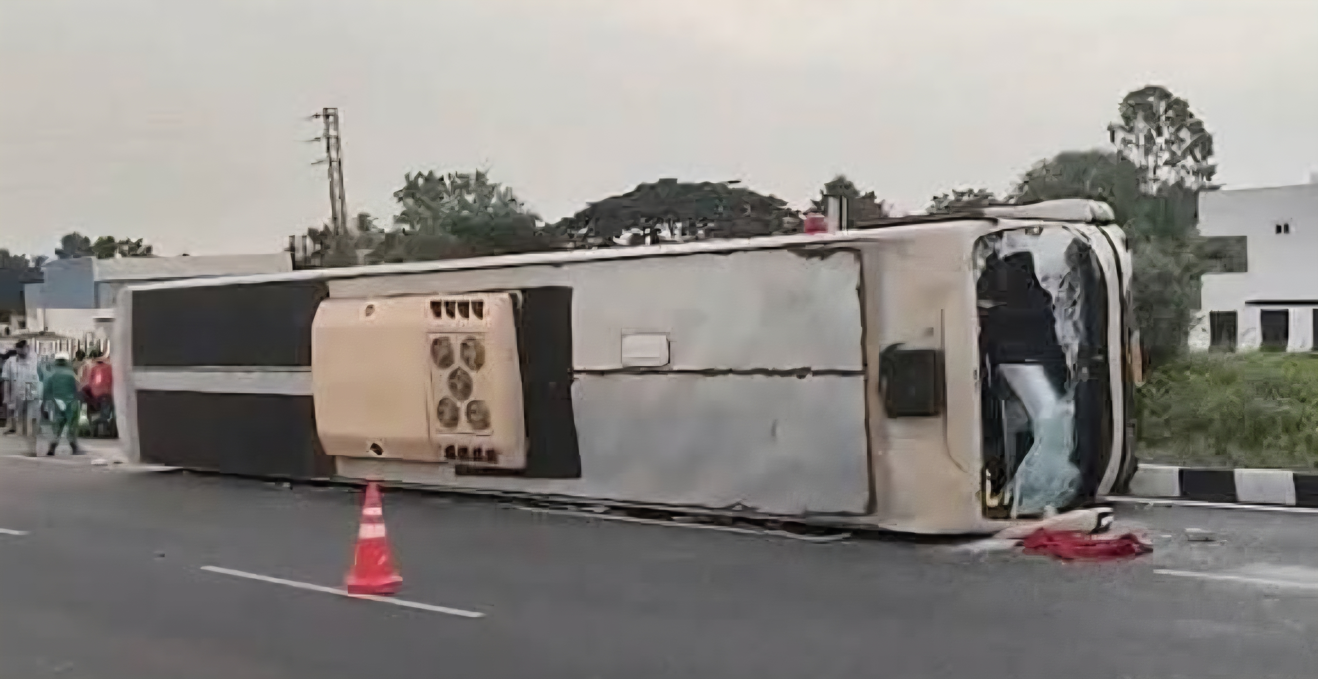 నెల్లూరు జిల్లా కోవూరు వద్ద జాతీయ రహదారిపై రోడ్డు ప్రమాదం జరిగింది. భువనేశ్వర్ నుంచి బెంగళూరు వెళ్తున్న ప్రైవేట్ ట్రావెల్స్ బస్సు శనివారం తెల్లవారుజామున ఫ్లైఓవర్ పై డివైడర్ ను ఢీకొట్టి బోల్తా పడింది. ఈ ఘటనలో నలుగురు ప్రయాణికులు, డ్రైవర్ కు తీవ్ర గాయాలయ్యాయి. మరో పది మందికి స్వల్పంగా గాయపడ్డారు. బాధితులను నెల్లూరు ఆస్పత్రికి తరలించారు. అతి వేగం, డ్రైవర్ నిద్రమత్తే ప్రమాదానికి కారణమని ప్రయాణికులు తెలిపారు. ఘటనా స్థలికి చేరుకున్న పోలీసులు ప్రయాణికులను సురక్షిత ప్రాంతాలకు తరలించారు.