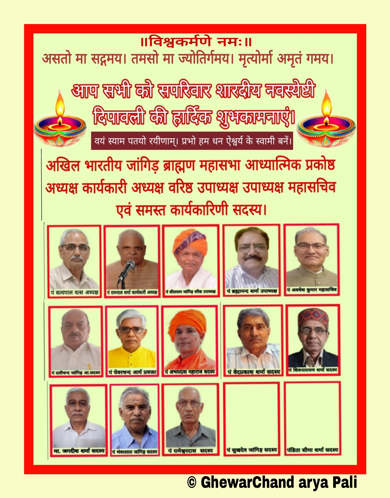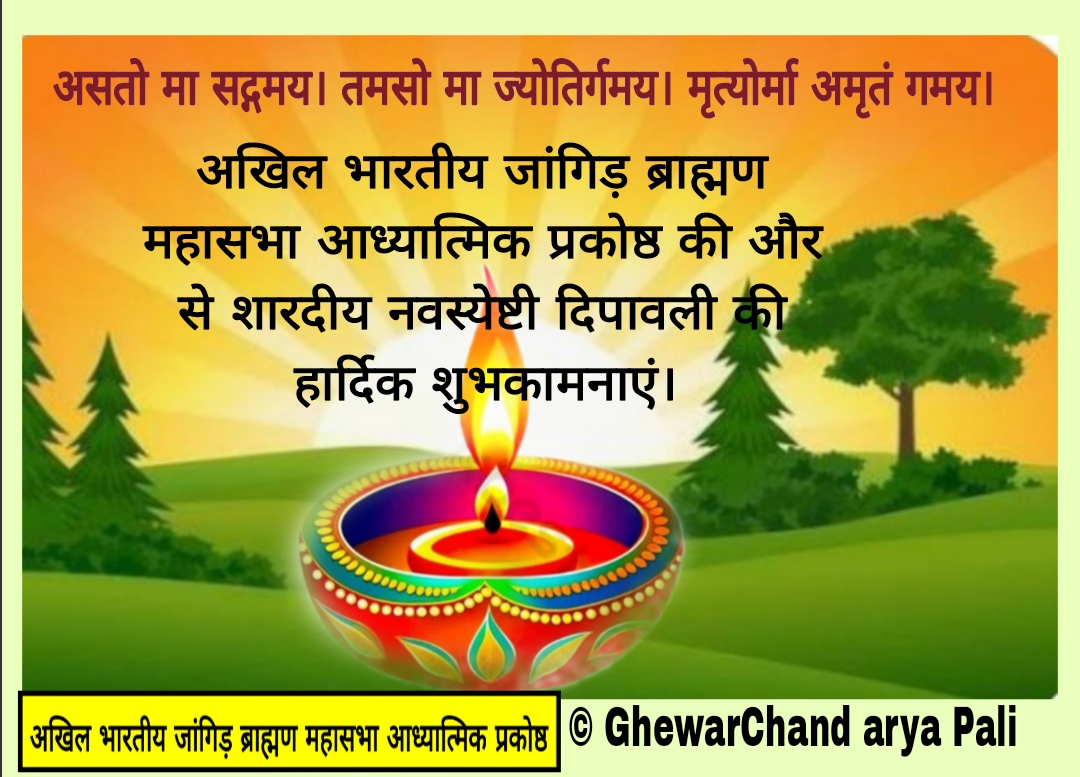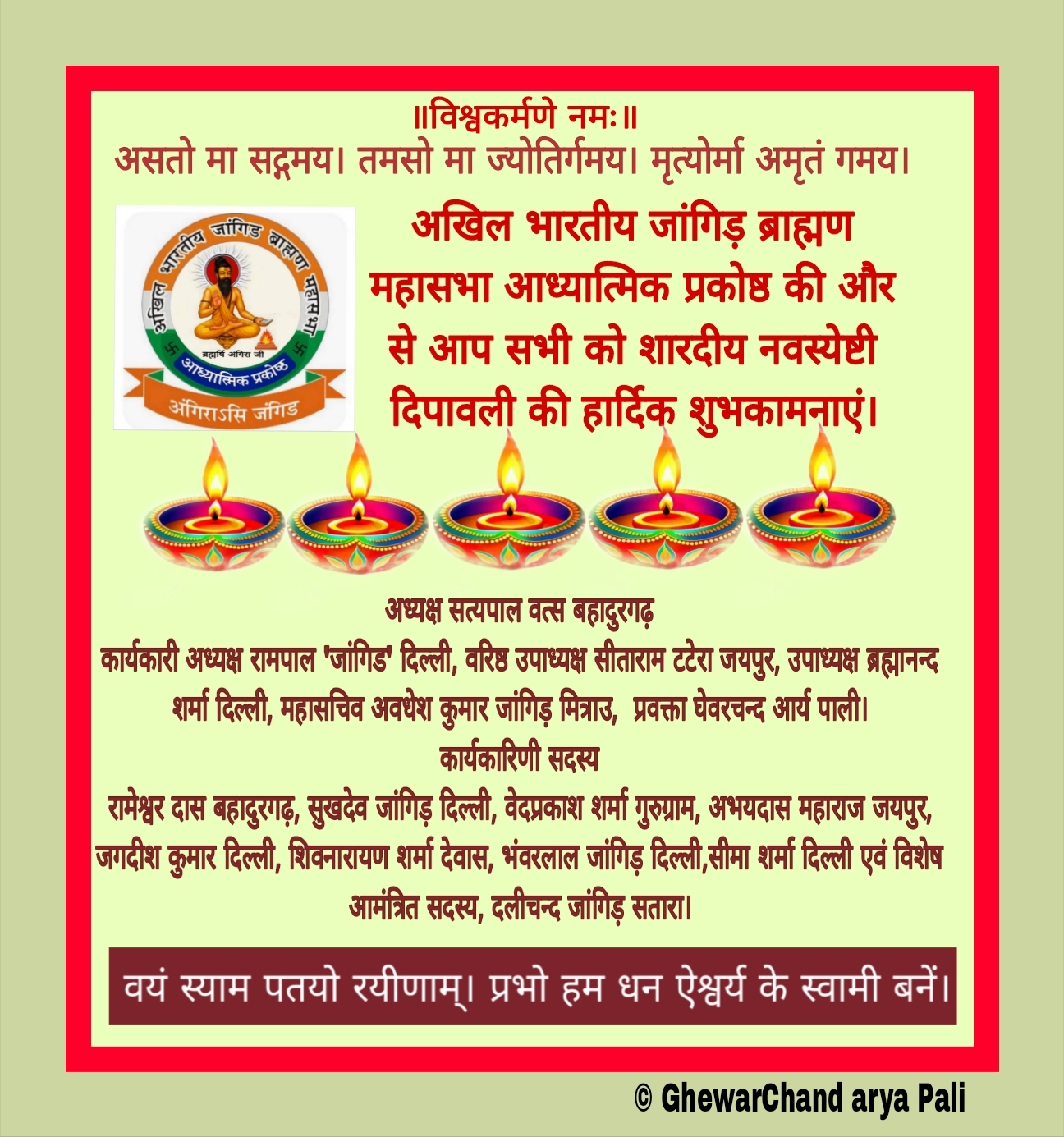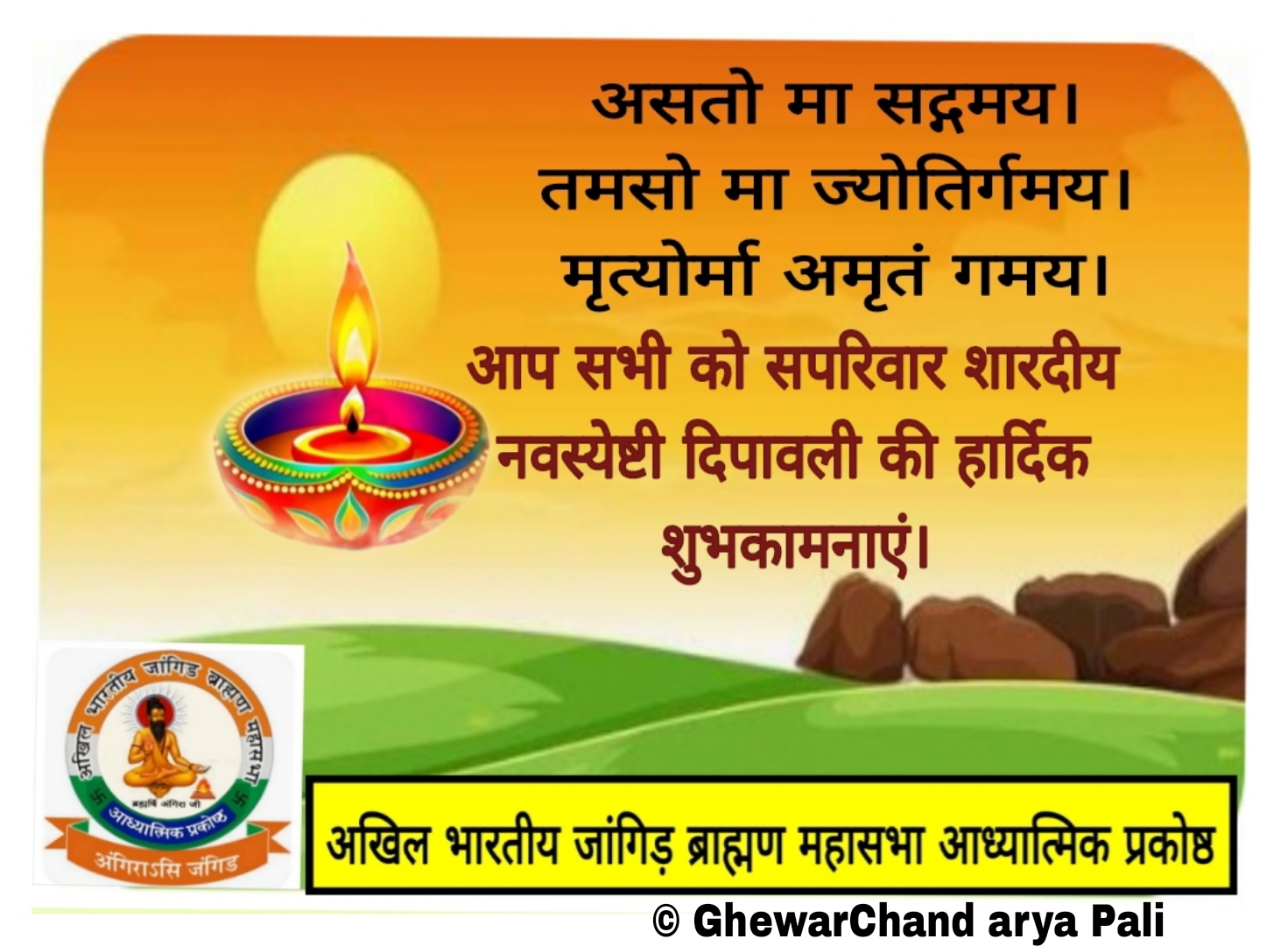 अखिल भारतीय जांगिड़ ब्राह्मण महासभा आध्यात्मिक प्रकोष्ठ की ओर से शारदीय नवस्येष्टी दिपावली की शुभकामनाएं।