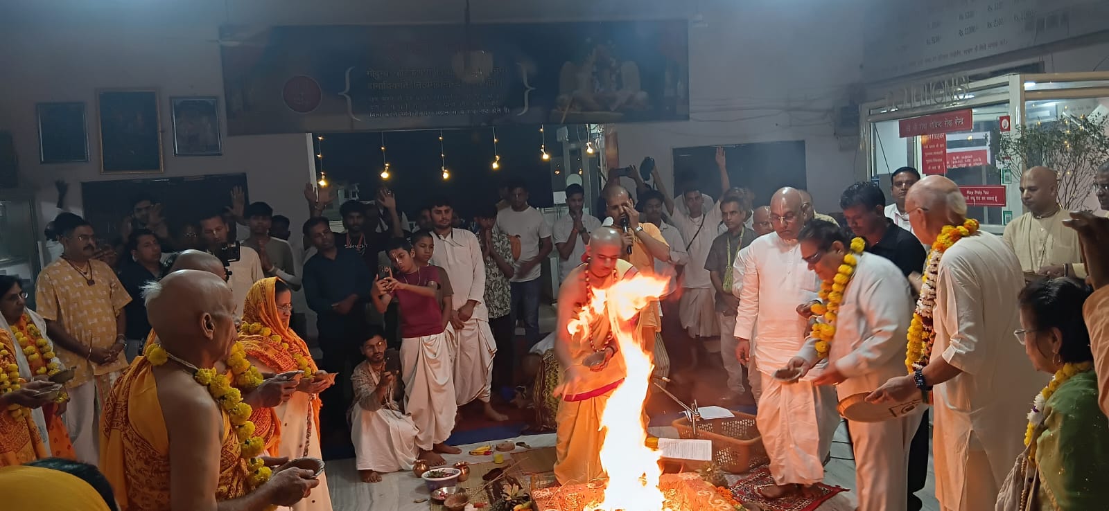 इस्कॉन इंदौर के श्री श्री राधा गोविंद मंदिर में परम पूज्य महामन स्वामी महाराज जी के पावन सान्निध्य और नेतृत्व में भव्य दीक्षा समारोह का आयोजन किया गया। यह शुभ अवसर कार्तिक मास के पवित्र दिनों में नरक चतुर्दशी के दिन संपन्न हुआ।