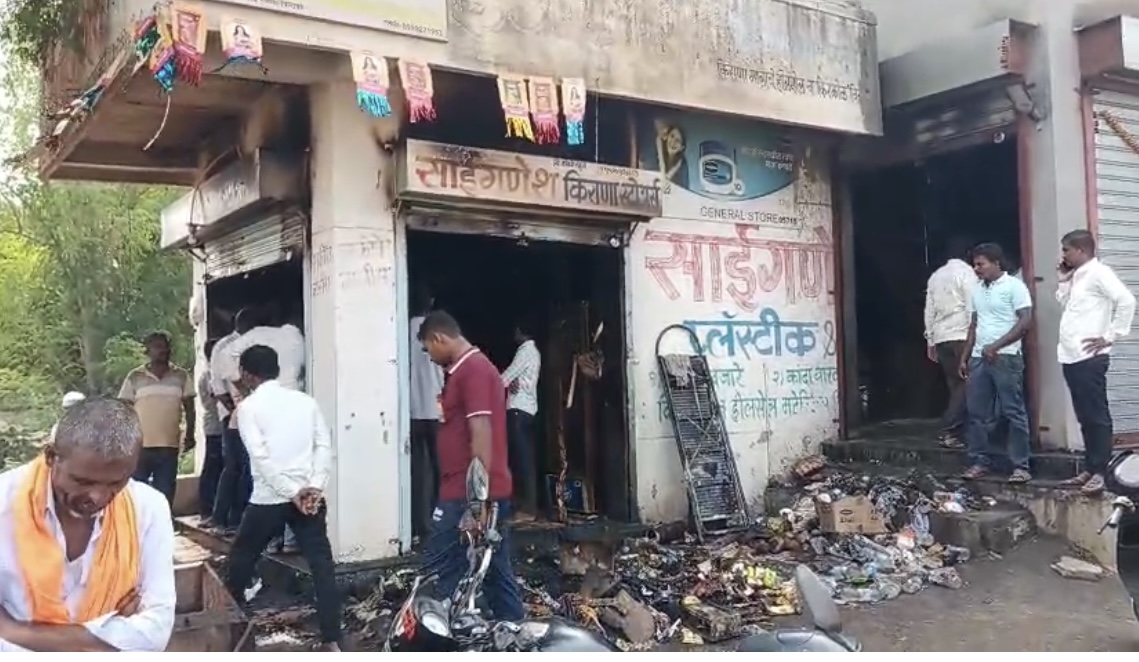 आव्हाणे येथे अज्ञातांनी जाळले किराणा दुकान