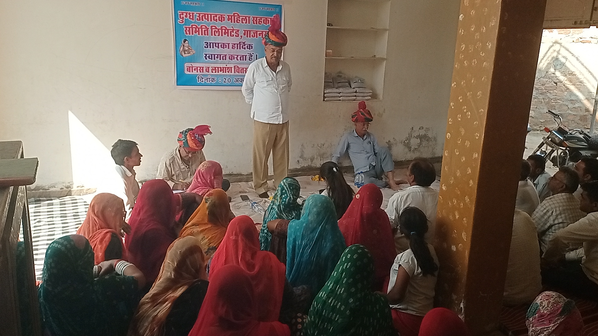 गाजन गढ़ दुग्ध उत्पादक सहकारी समिति लिमिटेड पर बोनस राशि व स्टील की टंकिया वितरण की गई।