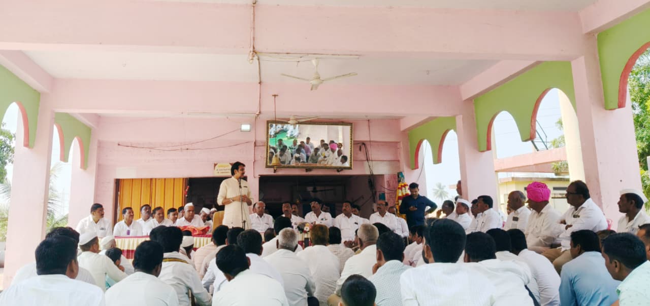 फोटो:-ऊस उत्पादक शेतकऱ्यांच्या संवाद दौऱ्यात कंदर, शिरोळा येथे मार्गदर्शन करताना हर्षवर्धन पाटील.