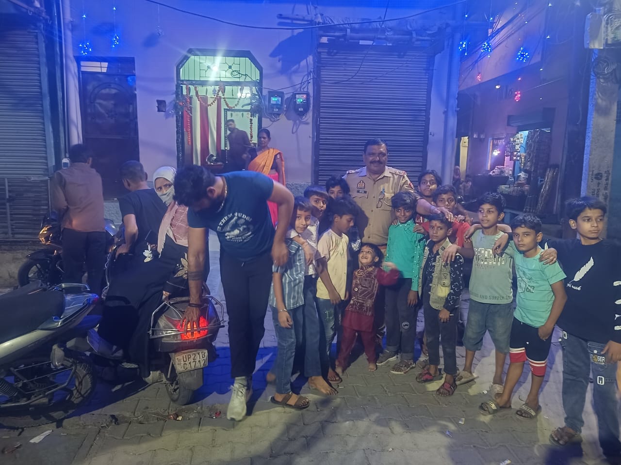 चौकी इंचार्ज ओम शुक्ला थाना मुगलपुरा गरीबों के साथ खेली दीपावली बाती मिठाई