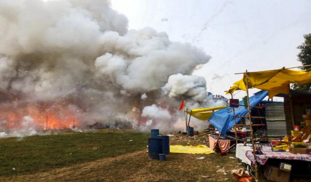 فتح پور میں پٹاخوں کے بازار میں خوفناک آگ، 70 دکانیں جل کر راکھ