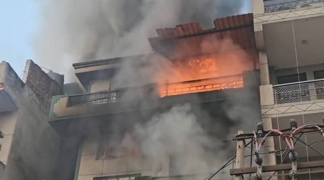 संजय गांधी ट्रांसपोर्ट नगर में एक गोदाम के अंदर बीती रात से लगी है आग