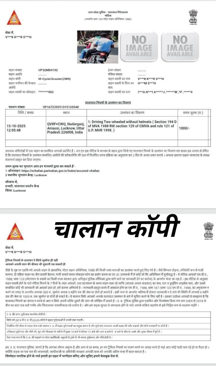 राजधानी लखनऊ की यातायात पुलिस ने N की बजाय M फीड कर चालान काट दिया 👀👁️👁️