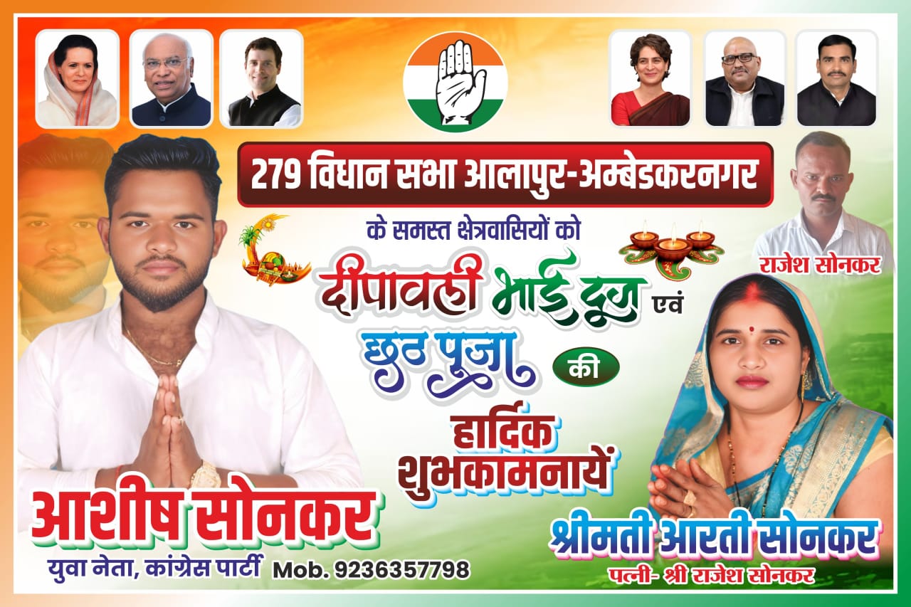 अम्बेडकर नगर विधानसभा आला पुर से कांग्रेस पार्टी में किया ज्वॉइन आशीष सोनकर श्रीमती आरती सोनकर