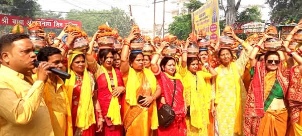 मेरठ। विश्व कल्याण मिशन ट्रस्ट, शाखा मेरठ के तत्वाधान में शनिवार 25 अक्टूबर से 31 अक्टूबर तक परम पूज्य श्री चिन्मयानंद बापू जी के पावन मुखारविंद से भैंसाली मैदान में आयोजित होने जा रही श्रीमद् भगवत कथा के शुभारंभ के अवसर पर शुक्रवार को औघड़नाथ मंदिर से निकली भव्य कलश यात्रा निकाली गई।